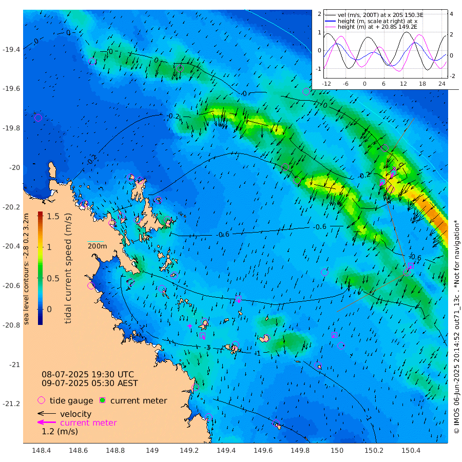 29cm/s 157T +10cm/s rms + 2cm/s 5T. Brampton I 18m 26cm/s 174T +9cm/s rms + 6cm/s 66T. Wigton I 38m 20cm/s -158T +7cm/s rms + 8cm/s 141T. Tern I 47m 35cm/s -156T +7cm/s rms + 12cm/s 54T. N Bugatti Rf 64m 32cm/s -144T +3cm/s rms + 13cm/s 178T. W Bugatti Rf 70m 20cm/s -156T +3cm/s rms + 3cm/s -130T. Creal Rf 69m -25cm Holbourne I -90cm Tern I -33cm Bugatti Rf -58cm Creal Rf -17cm White Tip I -15cm Wallaby Reef -7cm Kennedy Reef -4cm Unnamed Reef No. 2 -50cm Tideway Reef -36cm Hayman Island -68cm Square Reef -46cm Double Bay -46cm Molle Island -48cm Cid Harbour -44cm Hook Island -49cm Border Island -51cm Haslewood Island -55cm Shute Harbour -82cm Thomas Island -76cm Credlin Reef -82cm East Repulse Island -80cm Blacksmith Island -98cm Laguna Quays -80cm Carlisle Island (Off) -94cm St. Bees Island -81cm Scawfell Island -88cm Penrith Island -113cm Mackay Outer Harbour -120cm Hay Point -128cm Prudhoe Island