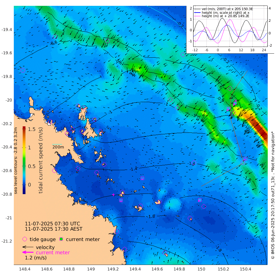 14cm/s -176T +10cm/s rms + 2cm/s 5T. Brampton I 18m 13cm/s -161T +9cm/s rms + 6cm/s 66T. Wigton I 38m 23cm/s -143T +7cm/s rms + 8cm/s 141T. Tern I 47m 33cm/s -144T +7cm/s rms + 12cm/s 54T. N Bugatti Rf 64m 28cm/s -139T +3cm/s rms + 13cm/s 178T. W Bugatti Rf 70m 17cm/s -125T +3cm/s rms + 3cm/s -130T. Creal Rf 69m -76cm Holbourne I -173cm Tern I -81cm Bugatti Rf -120cm Creal Rf -53cm White Tip I -65cm Wallaby Reef -56cm Kennedy Reef -33cm Unnamed Reef No. 2 -104cm Tideway Reef -94cm Hayman Island -142cm Square Reef -94cm Double Bay -117cm Molle Island -123cm Cid Harbour -98cm Hook Island -116cm Border Island -122cm Haslewood Island -120cm Shute Harbour -149cm Thomas Island -152cm Credlin Reef -160cm East Repulse Island -169cm Blacksmith Island -180cm Laguna Quays -167cm Carlisle Island (Off) -195cm St. Bees Island -179cm Scawfell Island -185cm Penrith Island -201cm Mackay Outer Harbour -213cm Hay Point -210cm Prudhoe Island