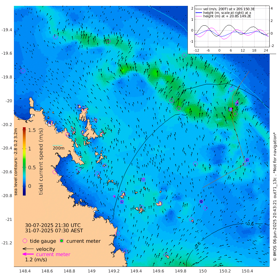 10cm/s 38T +10cm/s rms + 2cm/s 5T. Brampton I 18m 17cm/s -10T +9cm/s rms + 6cm/s 66T. Wigton I 38m 1cm/s 146T +7cm/s rms + 8cm/s 141T. Tern I 47m 16cm/s 2T +7cm/s rms + 12cm/s 54T. N Bugatti Rf 64m 22cm/s 33T +3cm/s rms + 13cm/s 178T. W Bugatti Rf 70m 9cm/s -4T +3cm/s rms + 3cm/s -130T. Creal Rf 69m -42cm Holbourne I -82cm Tern I -49cm Bugatti Rf -62cm Creal Rf -42cm White Tip I -34cm Wallaby Reef -50cm Kennedy Reef -38cm Unnamed Reef No. 2 -43cm Tideway Reef -50cm Hayman Island -57cm Square Reef -38cm Double Bay -52cm Molle Island -50cm Cid Harbour -49cm Hook Island -44cm Border Island -41cm Haslewood Island -49cm Shute Harbour -60cm Thomas Island -65cm Credlin Reef -55cm East Repulse Island -64cm Blacksmith Island -61cm Laguna Quays -61cm Carlisle Island (Off) -66cm St. Bees Island -57cm Scawfell Island -85cm Penrith Island -83cm Mackay Outer Harbour -91cm Hay Point -92cm Prudhoe Island