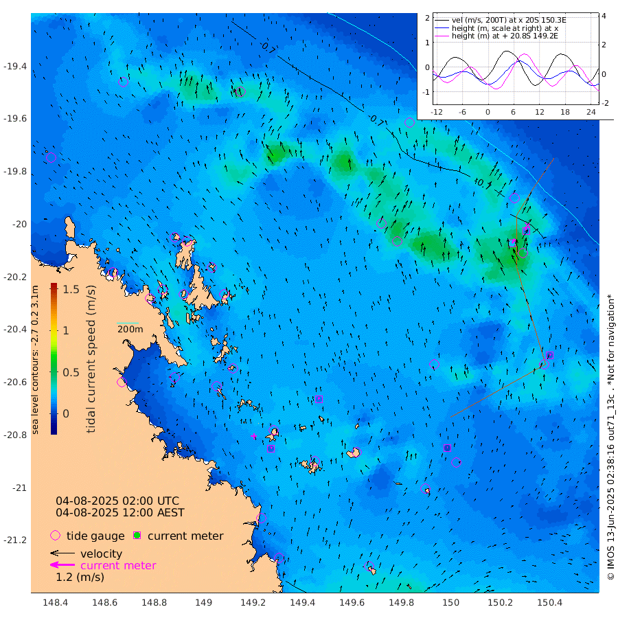 8cm/s 13T +10cm/s rms + 2cm/s 5T. Brampton I 18m 10cm/s -20T +9cm/s rms + 6cm/s 66T. Wigton I 38m 3cm/s 64T +7cm/s rms + 8cm/s 141T. Tern I 47m 14cm/s -12T +7cm/s rms + 12cm/s 54T. N Bugatti Rf 64m 25cm/s 29T +3cm/s rms + 13cm/s 178T. W Bugatti Rf 70m 8cm/s 15T +3cm/s rms + 3cm/s -130T. Creal Rf 69m -82cm Holbourne I -88cm Tern I -67cm Bugatti Rf -71cm Creal Rf -64cm White Tip I -71cm Wallaby Reef -80cm Kennedy Reef -66cm Unnamed Reef No. 2 -72cm Tideway Reef -80cm Hayman Island -84cm Square Reef -79cm Double Bay -97cm Molle Island -76cm Cid Harbour -79cm Hook Island -74cm Border Island -68cm Haslewood Island -78cm Shute Harbour -75cm Thomas Island -79cm Credlin Reef -78cm East Repulse Island -79cm Blacksmith Island -81cm Laguna Quays -80cm Carlisle Island (Off) -79cm St. Bees Island -78cm Scawfell Island -89cm Penrith Island -86cm Mackay Outer Harbour -90cm Hay Point -89cm Prudhoe Island
