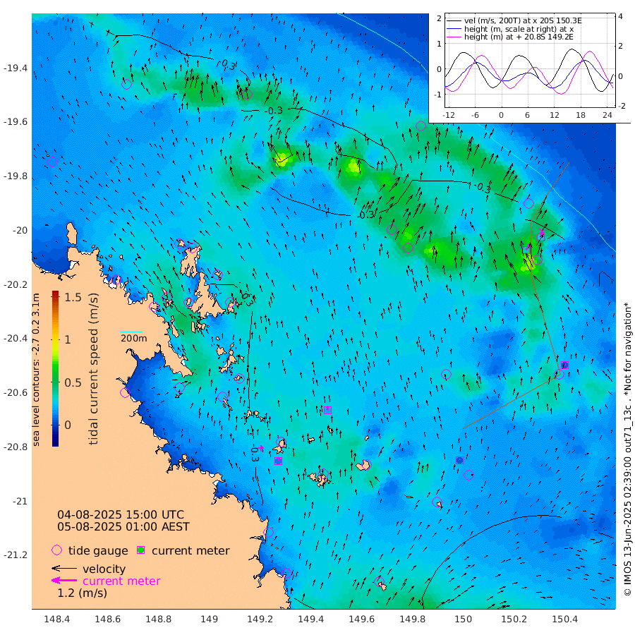 11cm/s 11T +10cm/s rms + 2cm/s 5T. Brampton I 18m 20cm/s -9T +9cm/s rms + 6cm/s 66T. Wigton I 38m 5cm/s 37T +7cm/s rms + 8cm/s 141T. Tern I 47m 27cm/s 16T +7cm/s rms + 12cm/s 54T. N Bugatti Rf 64m 36cm/s 29T +3cm/s rms + 13cm/s 178T. W Bugatti Rf 70m 6cm/s -10T +3cm/s rms + 3cm/s -130T. Creal Rf 69m -29cm Holbourne I -52cm Tern I -25cm Bugatti Rf -33cm Creal Rf -22cm White Tip I -23cm Wallaby Reef -29cm Kennedy Reef -25cm Unnamed Reef No. 2 -24cm Tideway Reef -30cm Hayman Island -31cm Square Reef -29cm Double Bay -24cm Molle Island -28cm Cid Harbour -24cm Hook Island -26cm Border Island -21cm Haslewood Island -30cm Shute Harbour -34cm Thomas Island -37cm Credlin Reef -32cm East Repulse Island -34cm Blacksmith Island -33cm Laguna Quays -33cm Carlisle Island (Off) -30cm St. Bees Island -40cm Scawfell Island -50cm Penrith Island -48cm Mackay Outer Harbour -55cm Hay Point -61cm Prudhoe Island