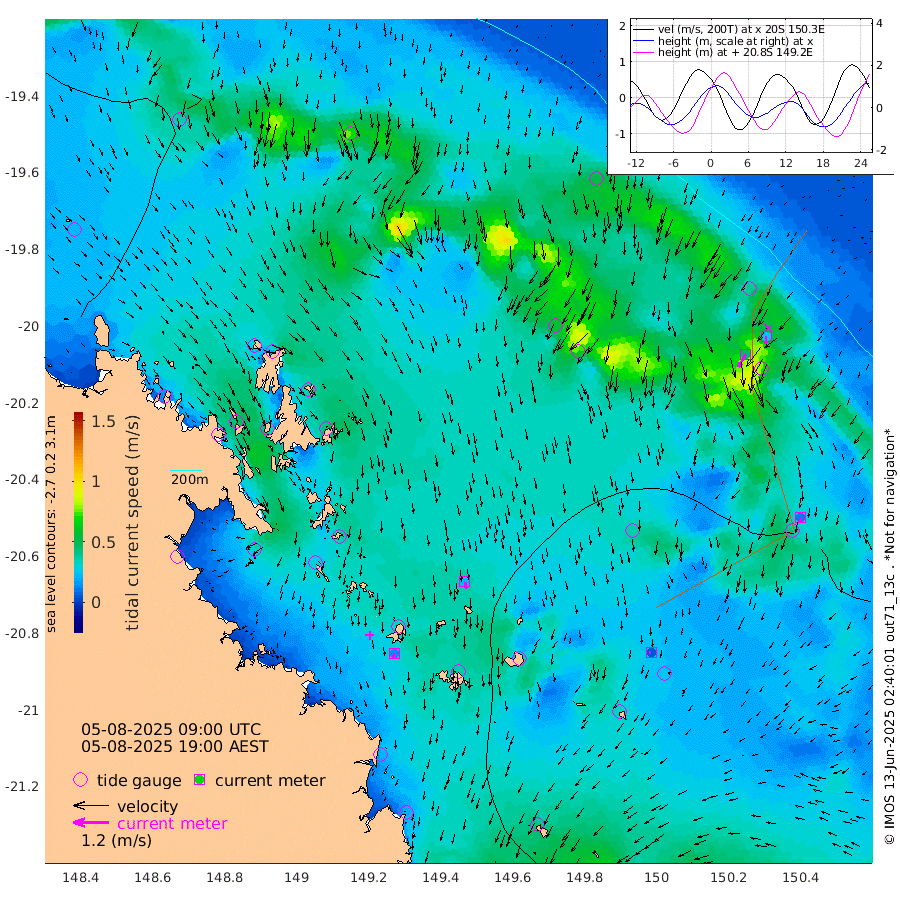 15cm/s -152T +10cm/s rms + 2cm/s 5T. Brampton I 18m 22cm/s 168T +9cm/s rms + 6cm/s 66T. Wigton I 38m 6cm/s -117T +7cm/s rms + 8cm/s 141T. Tern I 47m 26cm/s -176T +7cm/s rms + 12cm/s 54T. N Bugatti Rf 64m 48cm/s -149T +3cm/s rms + 13cm/s 178T. W Bugatti Rf 70m 12cm/s -178T +3cm/s rms + 3cm/s -130T. Creal Rf 69m 103cm Holbourne I 126cm Tern I 94cm Bugatti Rf 100cm Creal Rf 91cm White Tip I 93cm Wallaby Reef 99cm Kennedy Reef 94cm Unnamed Reef No. 2 97cm Tideway Reef 108cm Hayman Island 115cm Square Reef 104cm Double Bay 114cm Molle Island 105cm Cid Harbour 99cm Hook Island 98cm Border Island 92cm Haslewood Island 104cm Shute Harbour 104cm Thomas Island 116cm Credlin Reef 109cm East Repulse Island 112cm Blacksmith Island 106cm Laguna Quays 111cm Carlisle Island (Off) 117cm St. Bees Island 117cm Scawfell Island 130cm Penrith Island 122cm Mackay Outer Harbour 129cm Hay Point 131cm Prudhoe Island