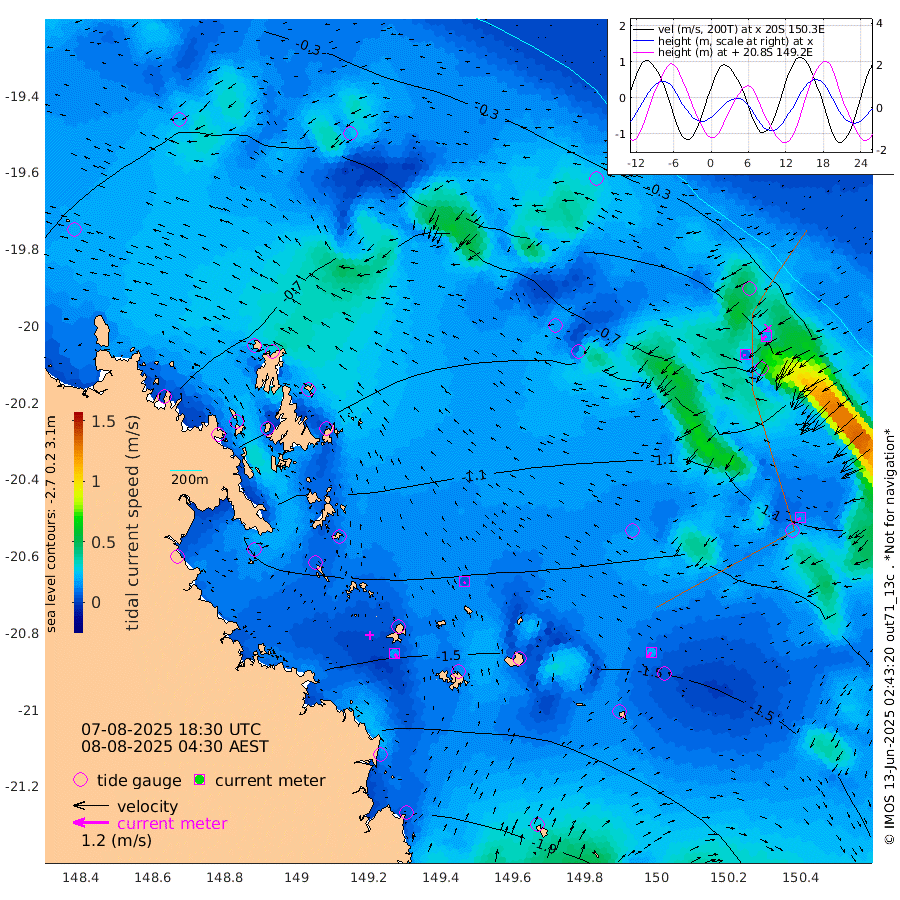 17cm/s 149T +10cm/s rms + 2cm/s 5T. Brampton I 18m 5cm/s -154T +9cm/s rms + 6cm/s 66T. Wigton I 38m 19cm/s -150T +7cm/s rms + 8cm/s 141T. Tern I 47m 16cm/s -134T +7cm/s rms + 12cm/s 54T. N Bugatti Rf 64m 9cm/s -106T +3cm/s rms + 13cm/s 178T. W Bugatti Rf 70m 14cm/s -121T +3cm/s rms + 3cm/s -130T. Creal Rf 69m -65cm Holbourne I -170cm Tern I -78cm Bugatti Rf -116cm Creal Rf -54cm White Tip I -55cm Wallaby Reef -50cm Kennedy Reef -38cm Unnamed Reef No. 2 -95cm Tideway Reef -88cm Hayman Island -130cm Square Reef -77cm Double Bay -98cm Molle Island -109cm Cid Harbour -85cm Hook Island -101cm Border Island -104cm Haslewood Island -108cm Shute Harbour -142cm Thomas Island -145cm Credlin Reef -147cm East Repulse Island -149cm Blacksmith Island -161cm Laguna Quays -149cm Carlisle Island (Off) -162cm St. Bees Island -152cm Scawfell Island -176cm Penrith Island -193cm Mackay Outer Harbour -206cm Hay Point -212cm Prudhoe Island