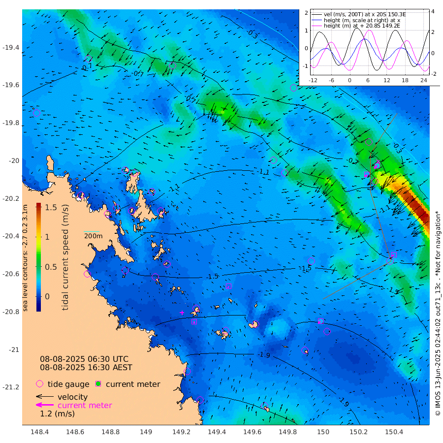 11cm/s -173T +10cm/s rms + 2cm/s 5T. Brampton I 18m 11cm/s -149T +9cm/s rms + 6cm/s 66T. Wigton I 38m 23cm/s -141T +7cm/s rms + 8cm/s 141T. Tern I 47m 29cm/s -138T +7cm/s rms + 12cm/s 54T. N Bugatti Rf 64m 20cm/s -132T +3cm/s rms + 13cm/s 178T. W Bugatti Rf 70m 17cm/s -115T +3cm/s rms + 3cm/s -130T. Creal Rf 69m -85cm Holbourne I -186cm Tern I -90cm Bugatti Rf -131cm Creal Rf -62cm White Tip I -76cm Wallaby Reef -64cm Kennedy Reef -42cm Unnamed Reef No. 2 -115cm Tideway Reef -106cm Hayman Island -157cm Square Reef -104cm Double Bay -123cm Molle Island -134cm Cid Harbour -107cm Hook Island -125cm Border Island -131cm Haslewood Island -131cm Shute Harbour -160cm Thomas Island -165cm Credlin Reef -172cm East Repulse Island -180cm Blacksmith Island -190cm Laguna Quays -177cm Carlisle Island (Off) -209cm St. Bees Island -190cm Scawfell Island -197cm Penrith Island -213cm Mackay Outer Harbour -225cm Hay Point -226cm Prudhoe Island