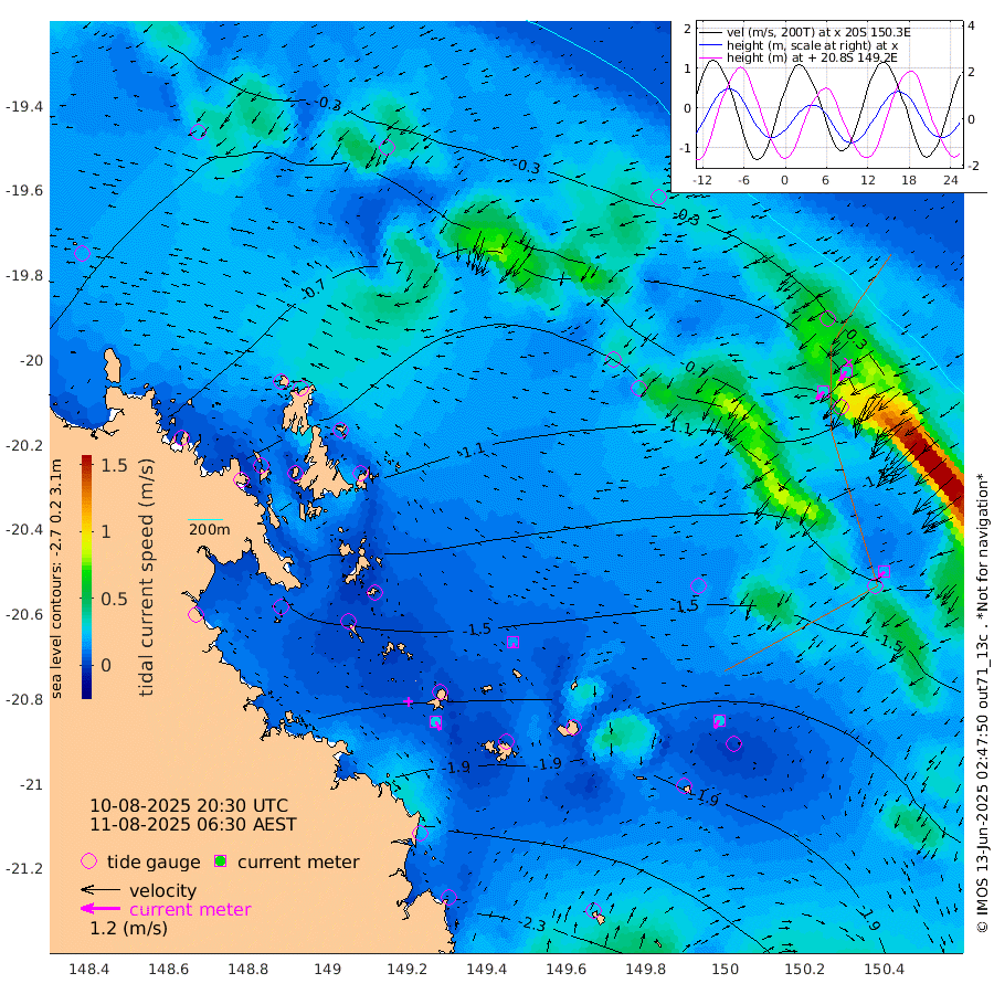 28cm/s 154T +10cm/s rms + 2cm/s 5T. Brampton I 18m 16cm/s -180T +9cm/s rms + 6cm/s 66T. Wigton I 38m 28cm/s -152T +7cm/s rms + 8cm/s 141T. Tern I 47m 35cm/s -147T +7cm/s rms + 12cm/s 54T. N Bugatti Rf 64m 32cm/s -138T +3cm/s rms + 13cm/s 178T. W Bugatti Rf 70m 19cm/s -132T +3cm/s rms + 3cm/s -130T. Creal Rf 69m -64cm Holbourne I -197cm Tern I -85cm Bugatti Rf -133cm Creal Rf -53cm White Tip I -53cm Wallaby Reef -45cm Kennedy Reef -30cm Unnamed Reef No. 2 -103cm Tideway Reef -96cm Hayman Island -142cm Square Reef -84cm Double Bay -121cm Molle Island -127cm Cid Harbour -97cm Hook Island -115cm Border Island -125cm Haslewood Island -124cm Shute Harbour -167cm Thomas Island -168cm Credlin Reef -182cm East Repulse Island -183cm Blacksmith Island -198cm Laguna Quays -184cm Carlisle Island (Off) -205cm St. Bees Island -188cm Scawfell Island -210cm Penrith Island -235cm Mackay Outer Harbour -251cm Hay Point -243cm Prudhoe Island