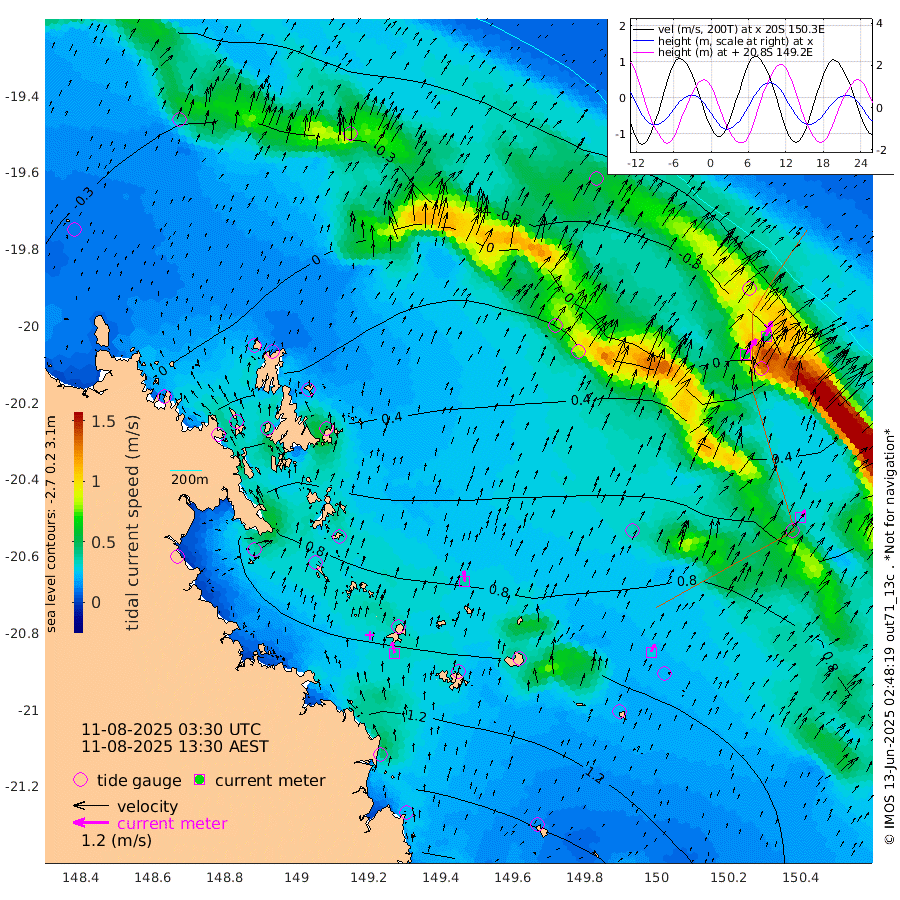 38cm/s -15T +10cm/s rms + 2cm/s 5T. Brampton I 18m 36cm/s -6T +9cm/s rms + 6cm/s 66T. Wigton I 38m 29cm/s 28T +7cm/s rms + 8cm/s 141T. Tern I 47m 53cm/s 22T +7cm/s rms + 12cm/s 54T. N Bugatti Rf 64m 63cm/s 34T +3cm/s rms + 13cm/s 178T. W Bugatti Rf 70m 29cm/s 27T +3cm/s rms + 3cm/s -130T. Creal Rf 69m -16cm Holbourne I 91cm Tern I 6cm Bugatti Rf 46cm Creal Rf -22cm White Tip I -22cm Wallaby Reef -27cm Kennedy Reef -47cm Unnamed Reef No. 2 22cm Tideway Reef 9cm Hayman Island 44cm Square Reef 6cm Double Bay 27cm Molle Island 41cm Cid Harbour 18cm Hook Island 37cm Border Island 44cm Haslewood Island 40cm Shute Harbour 81cm Thomas Island 67cm Credlin Reef 89cm East Repulse Island 97cm Blacksmith Island 113cm Laguna Quays 86cm Carlisle Island (Off) 116cm St. Bees Island 102cm Scawfell Island 101cm Penrith Island 134cm Mackay Outer Harbour 143cm Hay Point 131cm Prudhoe Island