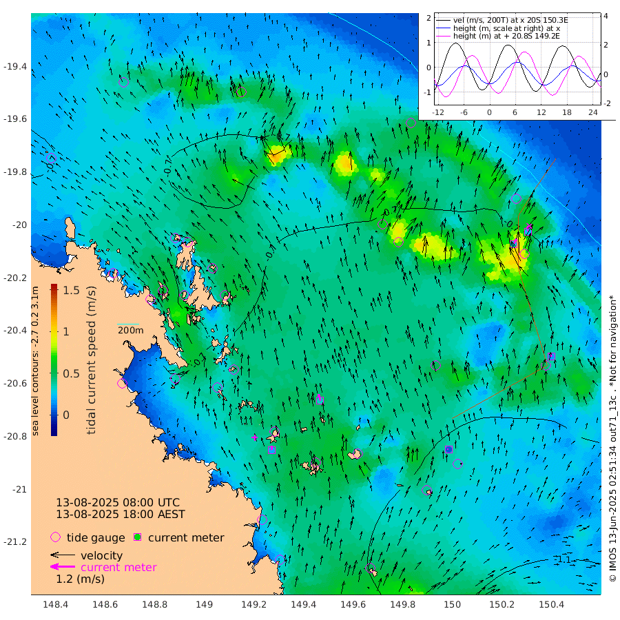 21cm/s -8T +10cm/s rms + 2cm/s 5T. Brampton I 18m 32cm/s -14T +9cm/s rms + 6cm/s 66T. Wigton I 38m 4cm/s -93T +7cm/s rms + 8cm/s 141T. Tern I 47m 25cm/s 0T +7cm/s rms + 12cm/s 54T. N Bugatti Rf 64m 32cm/s 27T +3cm/s rms + 13cm/s 178T. W Bugatti Rf 70m 17cm/s -28T +3cm/s rms + 3cm/s -130T. Creal Rf 69m -68cm Holbourne I -136cm Tern I -78cm Bugatti Rf -101cm Creal Rf -63cm White Tip I -62cm Wallaby Reef -59cm Kennedy Reef -60cm Unnamed Reef No. 2 -78cm Tideway Reef -81cm Hayman Island -100cm Square Reef -79cm Double Bay -74cm Molle Island -92cm Cid Harbour -76cm Hook Island -81cm Border Island -90cm Haslewood Island -87cm Shute Harbour -99cm Thomas Island -122cm Credlin Reef -114cm East Repulse Island -108cm Blacksmith Island -106cm Laguna Quays -126cm Carlisle Island (Off) -136cm St. Bees Island -119cm Scawfell Island -141cm Penrith Island -135cm Mackay Outer Harbour -148cm Hay Point -151cm Prudhoe Island