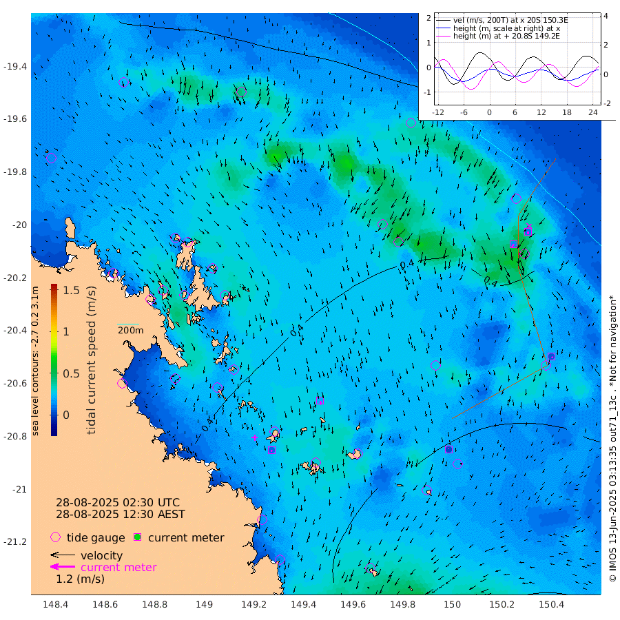 8cm/s -153T +10cm/s rms + 2cm/s 5T. Brampton I 18m 18cm/s 170T +9cm/s rms + 6cm/s 66T. Wigton I 38m 3cm/s -7T +7cm/s rms + 8cm/s 141T. Tern I 47m 11cm/s 174T +7cm/s rms + 12cm/s 54T. N Bugatti Rf 64m 15cm/s -147T +3cm/s rms + 13cm/s 178T. W Bugatti Rf 70m 7cm/s 142T +3cm/s rms + 3cm/s -130T. Creal Rf 69m 33cm Holbourne I 92cm Tern I 46cm Bugatti Rf 67cm Creal Rf 34cm White Tip I 24cm Wallaby Reef 36cm Kennedy Reef 24cm Unnamed Reef No. 2 39cm Tideway Reef 41cm Hayman Island 59cm Square Reef 37cm Double Bay 34cm Molle Island 48cm Cid Harbour 45cm Hook Island 44cm Border Island 42cm Haslewood Island 47cm Shute Harbour 64cm Thomas Island 72cm Credlin Reef 61cm East Repulse Island 71cm Blacksmith Island 70cm Laguna Quays 70cm Carlisle Island (Off) 94cm St. Bees Island 80cm Scawfell Island 96cm Penrith Island 97cm Mackay Outer Harbour 108cm Hay Point 113cm Prudhoe Island