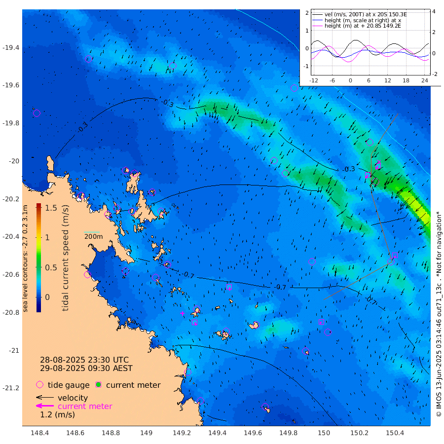22cm/s 157T +10cm/s rms + 2cm/s 5T. Brampton I 18m 23cm/s 175T +9cm/s rms + 6cm/s 66T. Wigton I 38m 14cm/s -159T +7cm/s rms + 8cm/s 141T. Tern I 47m 27cm/s -154T +7cm/s rms + 12cm/s 54T. N Bugatti Rf 64m 26cm/s -146T +3cm/s rms + 13cm/s 178T. W Bugatti Rf 70m 13cm/s -172T +3cm/s rms + 3cm/s -130T. Creal Rf 69m -37cm Holbourne I -69cm Tern I -30cm Bugatti Rf -45cm Creal Rf -19cm White Tip I -22cm Wallaby Reef -27cm Kennedy Reef -13cm Unnamed Reef No. 2 -43cm Tideway Reef -36cm Hayman Island -48cm Square Reef -49cm Double Bay -67cm Molle Island -41cm Cid Harbour -50cm Hook Island -45cm Border Island -45cm Haslewood Island -51cm Shute Harbour -65cm Thomas Island -54cm Credlin Reef -68cm East Repulse Island -61cm Blacksmith Island -82cm Laguna Quays -67cm Carlisle Island (Off) -60cm St. Bees Island -52cm Scawfell Island -65cm Penrith Island -89cm Mackay Outer Harbour -92cm Hay Point -89cm Prudhoe Island