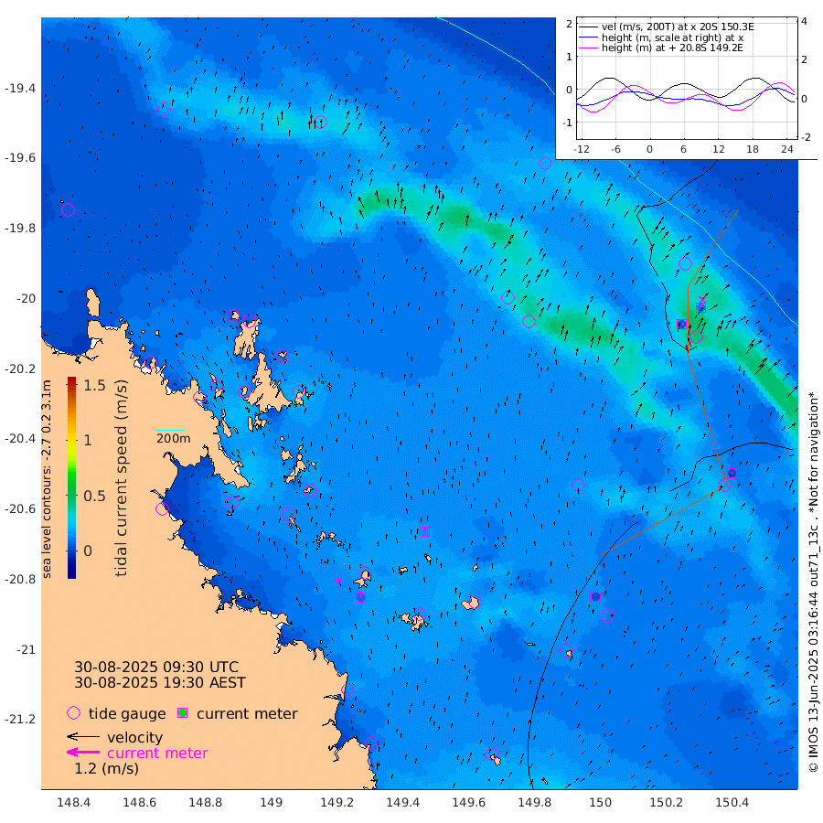 8cm/s -12T +10cm/s rms + 2cm/s 5T. Brampton I 18m 15cm/s -3T +9cm/s rms + 6cm/s 66T. Wigton I 38m 2cm/s 0T +7cm/s rms + 8cm/s 141T. Tern I 47m 12cm/s 32T +7cm/s rms + 12cm/s 54T. N Bugatti Rf 64m 5cm/s 77T +3cm/s rms + 13cm/s 178T. W Bugatti Rf 70m 4cm/s -30T +3cm/s rms + 3cm/s -130T. Creal Rf 69m 38cm Holbourne I 10cm Tern I 21cm Bugatti Rf 13cm Creal Rf 25cm White Tip I 34cm Wallaby Reef 29cm Kennedy Reef 31cm Unnamed Reef No. 2 37cm Tideway Reef 32cm Hayman Island 35cm Square Reef 44cm Double Bay 41cm Molle Island 25cm Cid Harbour 37cm Hook Island 26cm Border Island 27cm Haslewood Island 32cm Shute Harbour 25cm Thomas Island 22cm Credlin Reef 30cm East Repulse Island 14cm Blacksmith Island 24cm Laguna Quays 24cm Carlisle Island (Off) 20cm St. Bees Island 10cm Scawfell Island 6cm Penrith Island 11cm Mackay Outer Harbour 7cm Hay Point 14cm Prudhoe Island