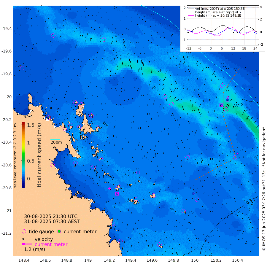 6cm/s 52T +10cm/s rms + 2cm/s 5T. Brampton I 18m 9cm/s -3T +9cm/s rms + 6cm/s 66T. Wigton I 38m 3cm/s 91T +7cm/s rms + 8cm/s 141T. Tern I 47m 2cm/s -86T +7cm/s rms + 12cm/s 54T. N Bugatti Rf 64m 6cm/s 70T +3cm/s rms + 13cm/s 178T. W Bugatti Rf 70m 6cm/s 9T +3cm/s rms + 3cm/s -130T. Creal Rf 69m -26cm Holbourne I -44cm Tern I -33cm Bugatti Rf -38cm Creal Rf -30cm White Tip I -22cm Wallaby Reef -33cm Kennedy Reef -26cm Unnamed Reef No. 2 -24cm Tideway Reef -31cm Hayman Island -34cm Square Reef -17cm Double Bay -36cm Molle Island -36cm Cid Harbour -30cm Hook Island -33cm Border Island -30cm Haslewood Island -29cm Shute Harbour -32cm Thomas Island -39cm Credlin Reef -35cm East Repulse Island -47cm Blacksmith Island -36cm Laguna Quays -40cm Carlisle Island (Off) -50cm St. Bees Island -45cm Scawfell Island -52cm Penrith Island -46cm Mackay Outer Harbour -49cm Hay Point -39cm Prudhoe Island