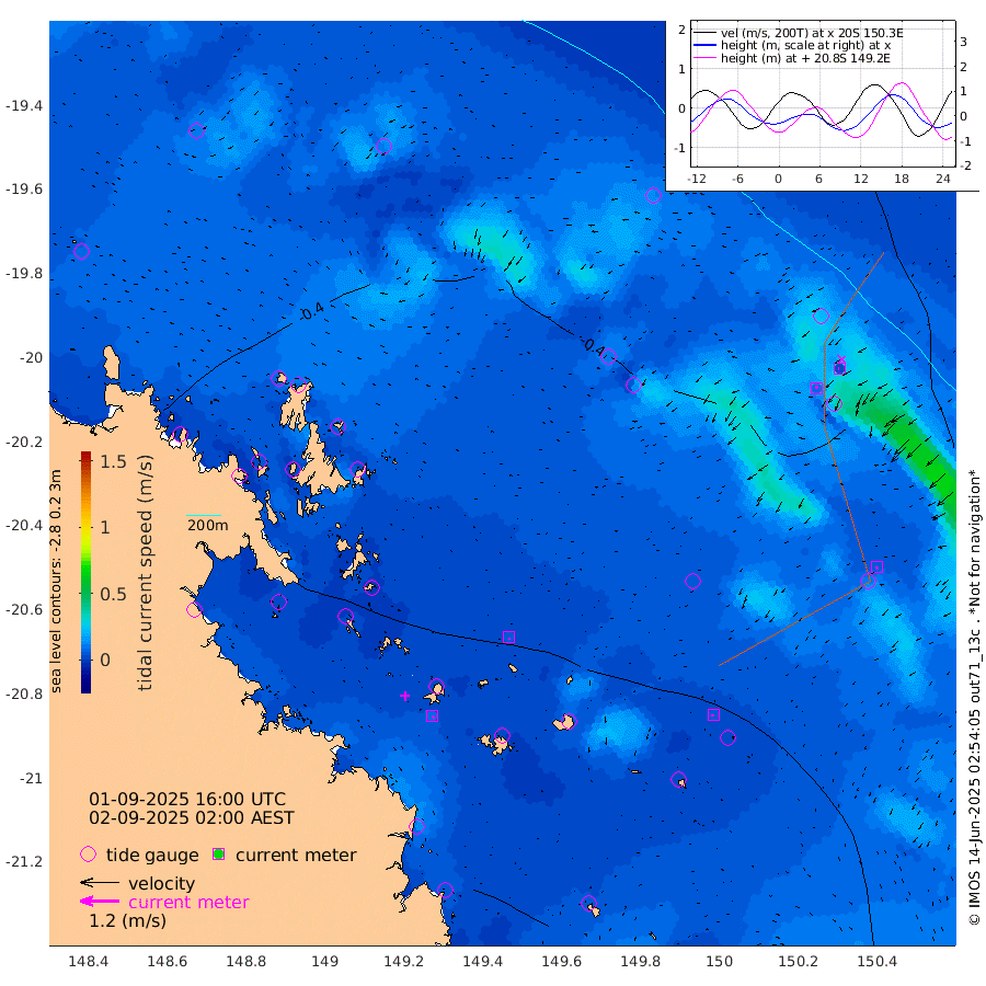 8cm/s 147T +10cm/s rms + 2cm/s 5T. Brampton I 18m 5cm/s -176T +9cm/s rms + 6cm/s 66T. Wigton I 38m 5cm/s -162T +7cm/s rms + 8cm/s 141T. Tern I 47m 2cm/s -103T +7cm/s rms + 12cm/s 54T. N Bugatti Rf 64m 7cm/s 0T +3cm/s rms + 13cm/s 178T. W Bugatti Rf 70m 6cm/s -142T +3cm/s rms + 3cm/s -130T. Creal Rf 69m -43cm Holbourne I -65cm Tern I -39cm Bugatti Rf -48cm Creal Rf -34cm White Tip I -38cm Wallaby Reef -31cm Kennedy Reef -32cm Unnamed Reef No. 2 -53cm Tideway Reef -46cm Hayman Island -64cm Square Reef -57cm Double Bay -49cm Molle Island -46cm Cid Harbour -47cm Hook Island -46cm Border Island -44cm Haslewood Island -53cm Shute Harbour -61cm Thomas Island -61cm Credlin Reef -60cm East Repulse Island -53cm Blacksmith Island -65cm Laguna Quays -58cm Carlisle Island (Off) -61cm St. Bees Island -56cm Scawfell Island -63cm Penrith Island -71cm Mackay Outer Harbour -75cm Hay Point -89cm Prudhoe Island
