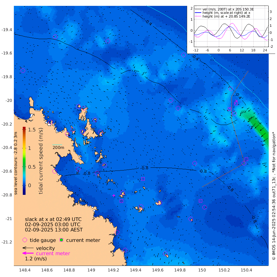 2cm/s -89T +10cm/s rms + 2cm/s 5T. Brampton I 18m 5cm/s -120T +9cm/s rms + 6cm/s 66T. Wigton I 38m 6cm/s -134T +7cm/s rms + 8cm/s 141T. Tern I 47m 8cm/s -77T +7cm/s rms + 12cm/s 54T. N Bugatti Rf 64m 11cm/s 11T +3cm/s rms + 13cm/s 178T. W Bugatti Rf 70m 3cm/s -58T +3cm/s rms + 3cm/s -130T. Creal Rf 69m -69cm Holbourne I -85cm Tern I -52cm Bugatti Rf -62cm Creal Rf -45cm White Tip I -58cm Wallaby Reef -59cm Kennedy Reef -43cm Unnamed Reef No. 2 -68cm Tideway Reef -69cm Hayman Island -84cm Square Reef -73cm Double Bay -82cm Molle Island -69cm Cid Harbour -70cm Hook Island -67cm Border Island -65cm Haslewood Island -73cm Shute Harbour -76cm Thomas Island -76cm Credlin Reef -79cm East Repulse Island -77cm Blacksmith Island -86cm Laguna Quays -80cm Carlisle Island (Off) -83cm St. Bees Island -79cm Scawfell Island -86cm Penrith Island -90cm Mackay Outer Harbour -93cm Hay Point -99cm Prudhoe Island
