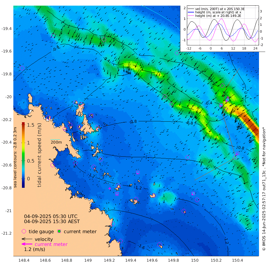 16cm/s -171T +10cm/s rms + 2cm/s 5T. Brampton I 18m 18cm/s -166T +9cm/s rms + 6cm/s 66T. Wigton I 38m 21cm/s -140T +7cm/s rms + 8cm/s 141T. Tern I 47m 30cm/s -143T +7cm/s rms + 12cm/s 54T. N Bugatti Rf 64m 25cm/s -135T +3cm/s rms + 13cm/s 178T. W Bugatti Rf 70m 16cm/s -128T +3cm/s rms + 3cm/s -130T. Creal Rf 69m -52cm Holbourne I -124cm Tern I -53cm Bugatti Rf -84cm Creal Rf -30cm White Tip I -44cm Wallaby Reef -33cm Kennedy Reef -14cm Unnamed Reef No. 2 -77cm Tideway Reef -66cm Hayman Island -109cm Square Reef -68cm Double Bay -77cm Molle Island -85cm Cid Harbour -70cm Hook Island -80cm Border Island -85cm Haslewood Island -86cm Shute Harbour -110cm Thomas Island -108cm Credlin Reef -114cm East Repulse Island -119cm Blacksmith Island -133cm Laguna Quays -116cm Carlisle Island (Off) -143cm St. Bees Island -126cm Scawfell Island -128cm Penrith Island -146cm Mackay Outer Harbour -154cm Hay Point -162cm Prudhoe Island