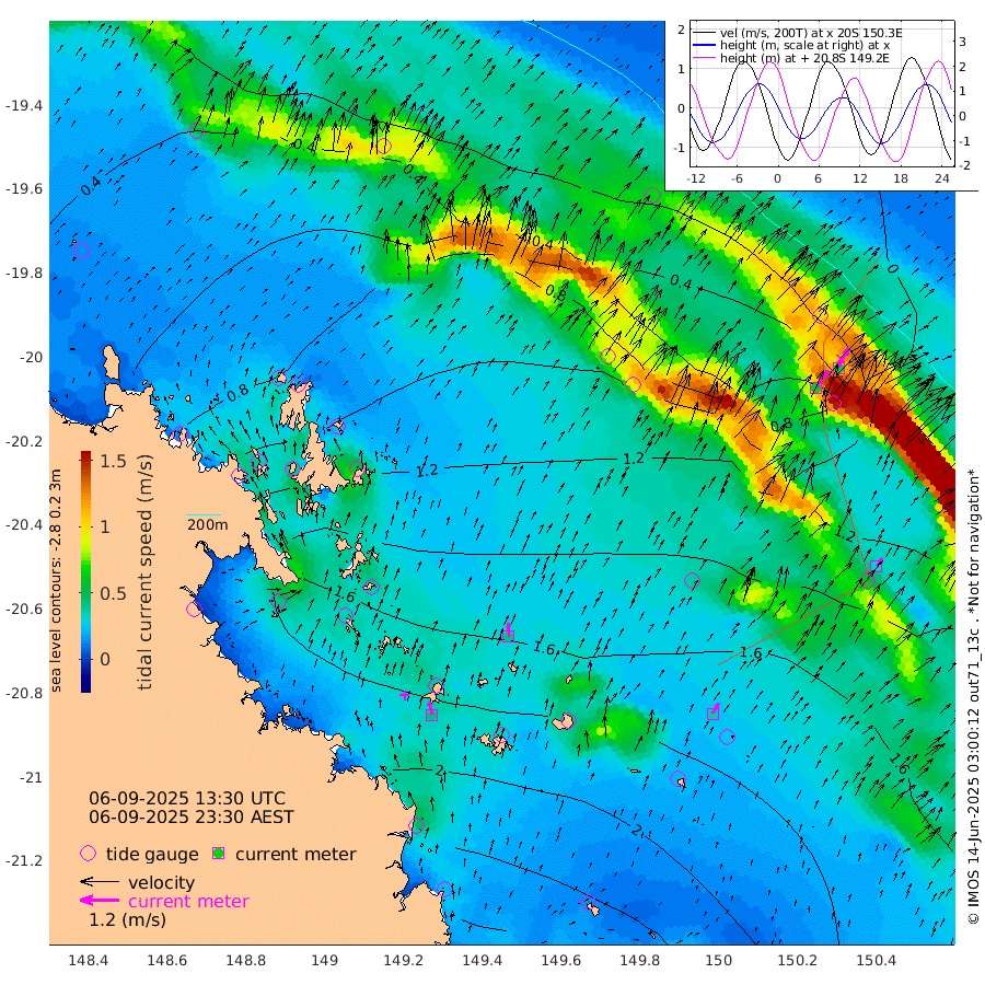 42cm/s -12T +10cm/s rms + 2cm/s 5T. Brampton I 18m 42cm/s -1T +9cm/s rms + 6cm/s 66T. Wigton I 38m 36cm/s 30T +7cm/s rms + 8cm/s 141T. Tern I 47m 69cm/s 26T +7cm/s rms + 12cm/s 54T. N Bugatti Rf 64m 64cm/s 34T +3cm/s rms + 13cm/s 178T. W Bugatti Rf 70m 30cm/s 36T +3cm/s rms + 3cm/s -130T. Creal Rf 69m 66cm Holbourne I 181cm Tern I 80cm Bugatti Rf 126cm Creal Rf 47cm White Tip I 55cm Wallaby Reef 36cm Kennedy Reef 19cm Unnamed Reef No. 2 111cm Tideway Reef 89cm Hayman Island 153cm Square Reef 86cm Double Bay 124cm Molle Island 127cm Cid Harbour 97cm Hook Island 125cm Border Island 131cm Haslewood Island 126cm Shute Harbour 167cm Thomas Island 163cm Credlin Reef 176cm East Repulse Island 182cm Blacksmith Island 204cm Laguna Quays 179cm Carlisle Island (Off) 198cm St. Bees Island 180cm Scawfell Island 191cm Penrith Island 224cm Mackay Outer Harbour 234cm Hay Point 231cm Prudhoe Island