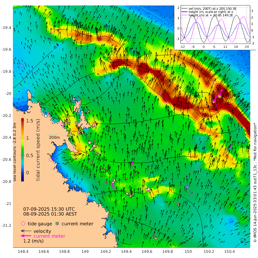 54cm/s -9T +10cm/s rms + 2cm/s 5T. Brampton I 18m 65cm/s -8T +9cm/s rms + 6cm/s 66T. Wigton I 38m 32cm/s 25T +7cm/s rms + 8cm/s 141T. Tern I 47m 87cm/s 19T +7cm/s rms + 12cm/s 54T. N Bugatti Rf 64m 98cm/s 30T +3cm/s rms + 13cm/s 178T. W Bugatti Rf 70m 38cm/s 14T +3cm/s rms + 3cm/s -130T. Creal Rf 69m -28cm Holbourne I 21cm Tern I -17cm Bugatti Rf 5cm Creal Rf -36cm White Tip I -33cm Wallaby Reef -48cm Kennedy Reef -59cm Unnamed Reef No. 2 4cm Tideway Reef -22cm Hayman Island 16cm Square Reef -18cm Double Bay 13cm Molle Island 5cm Cid Harbour -5cm Hook Island 19cm Border Island 19cm Haslewood Island 9cm Shute Harbour 36cm Thomas Island 17cm Credlin Reef 35cm East Repulse Island 42cm Blacksmith Island 66cm Laguna Quays 32cm Carlisle Island (Off) 35cm St. Bees Island 31cm Scawfell Island 23cm Penrith Island 61cm Mackay Outer Harbour 59cm Hay Point 50cm Prudhoe Island