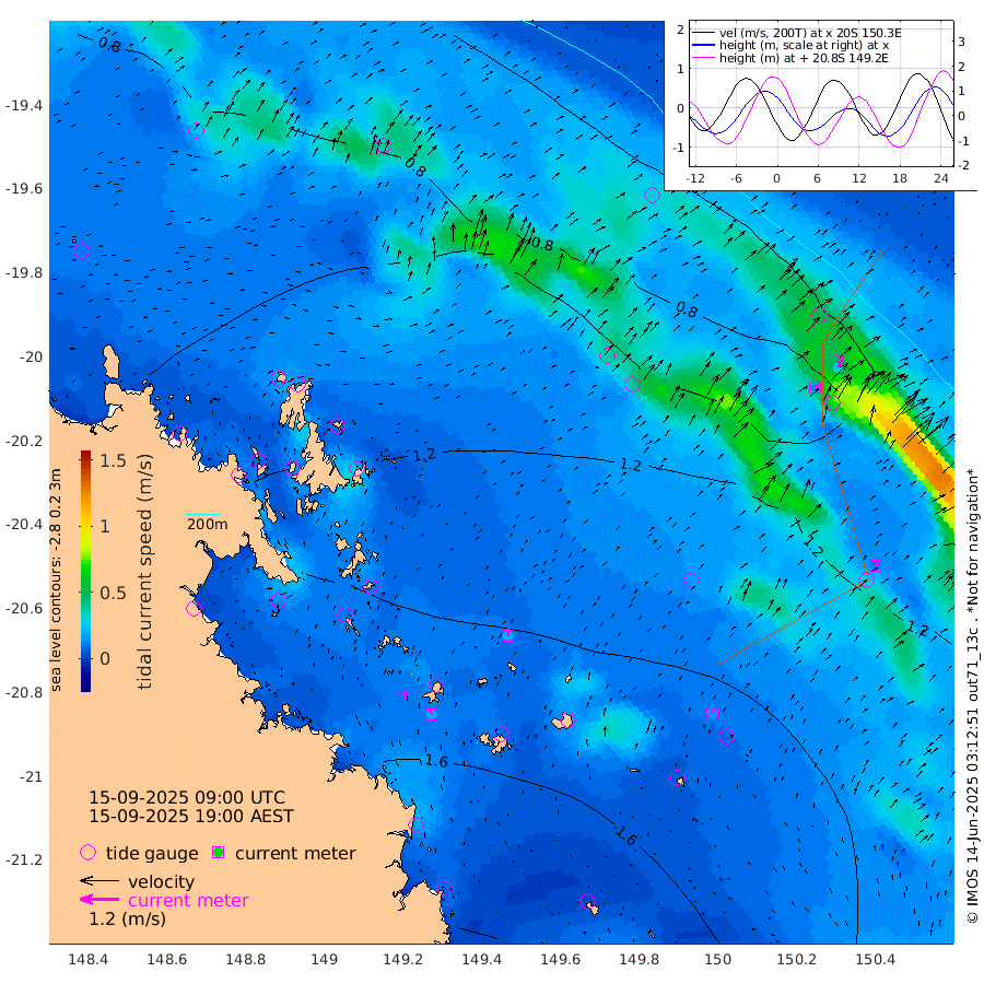 20cm/s -23T +10cm/s rms + 2cm/s 5T. Brampton I 18m 21cm/s 2T +9cm/s rms + 6cm/s 66T. Wigton I 38m 16cm/s 28T +7cm/s rms + 8cm/s 141T. Tern I 47m 31cm/s 37T +7cm/s rms + 12cm/s 54T. N Bugatti Rf 64m 14cm/s 49T +3cm/s rms + 13cm/s 178T. W Bugatti Rf 70m 11cm/s 47T +3cm/s rms + 3cm/s -130T. Creal Rf 69m 99cm Holbourne I 147cm Tern I 92cm Bugatti Rf 109cm Creal Rf 77cm White Tip I 94cm Wallaby Reef 81cm Kennedy Reef 73cm Unnamed Reef No. 2 124cm Tideway Reef 117cm Hayman Island 146cm Square Reef 112cm Double Bay 142cm Molle Island 135cm Cid Harbour 113cm Hook Island 129cm Border Island 131cm Haslewood Island 132cm Shute Harbour 145cm Thomas Island 151cm Credlin Reef 169cm East Repulse Island 155cm Blacksmith Island 165cm Laguna Quays 163cm Carlisle Island (Off) 166cm St. Bees Island 151cm Scawfell Island 158cm Penrith Island 170cm Mackay Outer Harbour 175cm Hay Point 166cm Prudhoe Island
