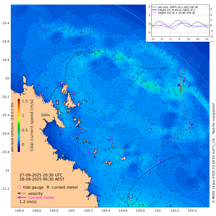 4cm/s 35T +10cm/s rms + 2cm/s 5T. Brampton I 18m 10cm/s -11T +9cm/s rms + 6cm/s 66T. Wigton I 38m 2cm/s 159T +7cm/s rms + 8cm/s 141T. Tern I 47m 5cm/s -118T +7cm/s rms + 12cm/s 54T. N Bugatti Rf 64m 3cm/s 74T +3cm/s rms + 13cm/s 178T. W Bugatti Rf 70m 5cm/s -24T +3cm/s rms + 3cm/s -130T. Creal Rf 69m -43cm Holbourne I -79cm Tern I -50cm Bugatti Rf -63cm Creal Rf -42cm White Tip I -37cm Wallaby Reef -44cm Kennedy Reef -35cm Unnamed Reef No. 2 -46cm Tideway Reef -48cm Hayman Island -63cm Square Reef -38cm Double Bay -58cm Molle Island -61cm Cid Harbour -50cm Hook Island -56cm Border Island -56cm Haslewood Island -54cm Shute Harbour -62cm Thomas Island -70cm Credlin Reef -66cm East Repulse Island -79cm Blacksmith Island -71cm Laguna Quays -73cm Carlisle Island (Off) -89cm St. Bees Island -81cm Scawfell Island -88cm Penrith Island -85cm Mackay Outer Harbour -91cm Hay Point -83cm Prudhoe Island