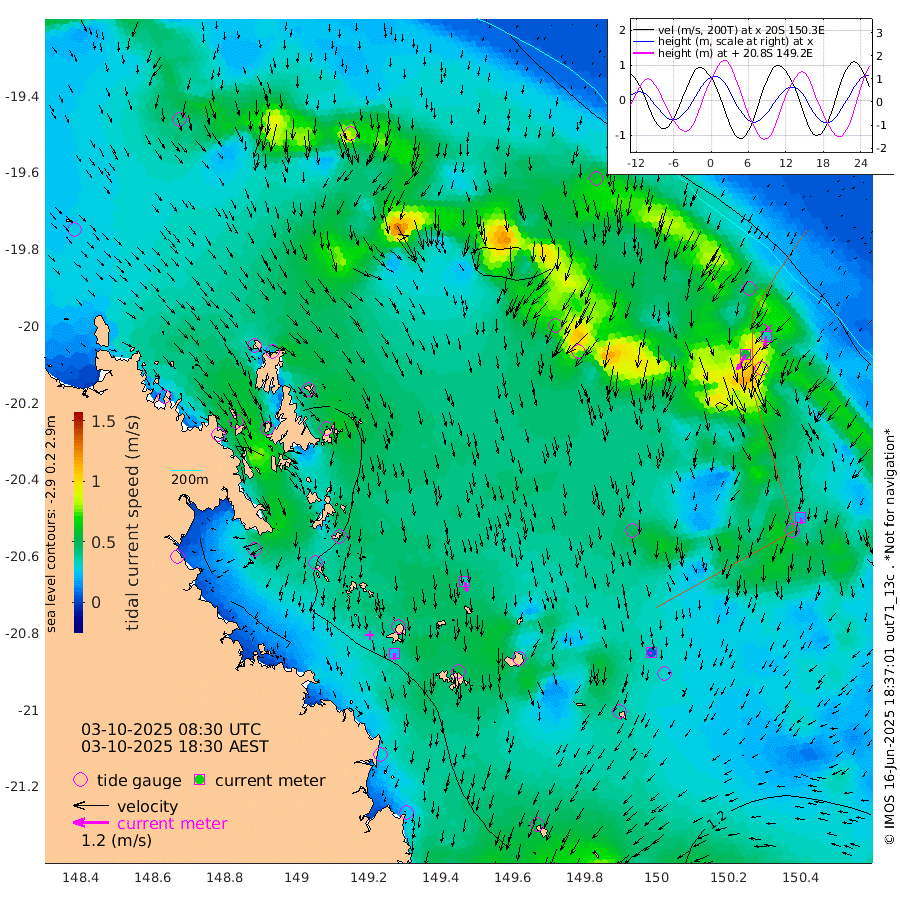 22cm/s -175T +10cm/s rms + 2cm/s 5T. Brampton I 18m 33cm/s 168T +9cm/s rms + 6cm/s 66T. Wigton I 38m 6cm/s -163T +7cm/s rms + 8cm/s 141T. Tern I 47m 37cm/s -173T +7cm/s rms + 12cm/s 54T. N Bugatti Rf 64m 57cm/s -151T +3cm/s rms + 13cm/s 178T. W Bugatti Rf 70m 21cm/s 174T +3cm/s rms + 3cm/s -130T. Creal Rf 69m 114cm Holbourne I 145cm Tern I 107cm Bugatti Rf 115cm Creal Rf 103cm White Tip I 110cm Wallaby Reef 109cm Kennedy Reef 108cm Unnamed Reef No. 2 113cm Tideway Reef 127cm Hayman Island 135cm Square Reef 112cm Double Bay 133cm Molle Island 128cm Cid Harbour 110cm Hook Island 116cm Border Island 115cm Haslewood Island 122cm Shute Harbour 119cm Thomas Island 141cm Credlin Reef 134cm East Repulse Island 129cm Blacksmith Island 121cm Laguna Quays 139cm Carlisle Island (Off) 130cm St. Bees Island 131cm Scawfell Island 158cm Penrith Island 140cm Mackay Outer Harbour 149cm Hay Point 146cm Prudhoe Island