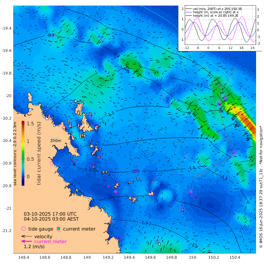 16cm/s 159T +10cm/s rms + 2cm/s 5T. Brampton I 18m 7cm/s -159T +9cm/s rms + 6cm/s 66T. Wigton I 38m 19cm/s -148T +7cm/s rms + 8cm/s 141T. Tern I 47m 19cm/s -134T +7cm/s rms + 12cm/s 54T. N Bugatti Rf 64m 14cm/s -113T +3cm/s rms + 13cm/s 178T. W Bugatti Rf 70m 14cm/s -116T +3cm/s rms + 3cm/s -130T. Creal Rf 69m -84cm Holbourne I -186cm Tern I -96cm Bugatti Rf -133cm Creal Rf -70cm White Tip I -78cm Wallaby Reef -67cm Kennedy Reef -53cm Unnamed Reef No. 2 -116cm Tideway Reef -107cm Hayman Island -157cm Square Reef -99cm Double Bay -129cm Molle Island -133cm Cid Harbour -106cm Hook Island -122cm Border Island -128cm Haslewood Island -131cm Shute Harbour -162cm Thomas Island -166cm Credlin Reef -171cm East Repulse Island -171cm Blacksmith Island -185cm Laguna Quays -172cm Carlisle Island (Off) -186cm St. Bees Island -174cm Scawfell Island -196cm Penrith Island -211cm Mackay Outer Harbour -224cm Hay Point -228cm Prudhoe Island