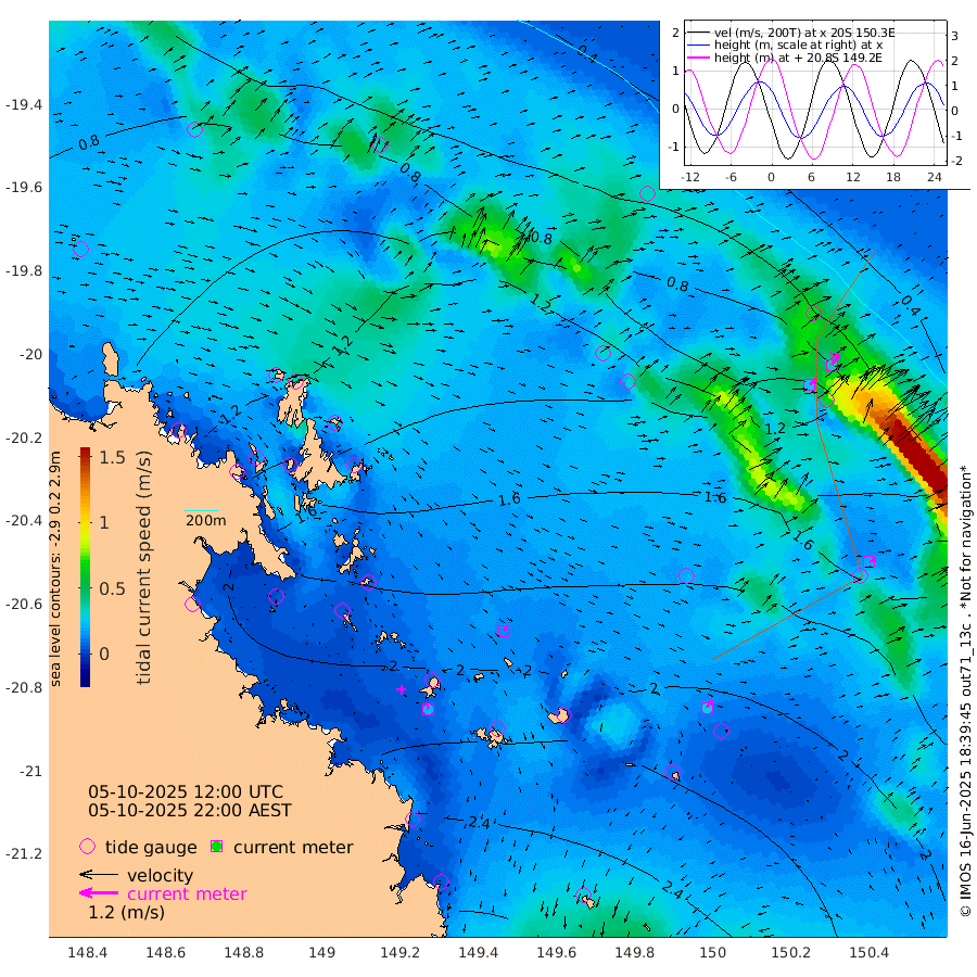 22cm/s -14T +10cm/s rms + 2cm/s 5T. Brampton I 18m 14cm/s 18T +9cm/s rms + 6cm/s 66T. Wigton I 38m 28cm/s 35T +7cm/s rms + 8cm/s 141T. Tern I 47m 38cm/s 37T +7cm/s rms + 12cm/s 54T. N Bugatti Rf 64m 26cm/s 45T +3cm/s rms + 13cm/s 178T. W Bugatti Rf 70m 21cm/s 64T +3cm/s rms + 3cm/s -130T. Creal Rf 69m 98cm Holbourne I 230cm Tern I 110cm Bugatti Rf 161cm Creal Rf 75cm White Tip I 86cm Wallaby Reef 69cm Kennedy Reef 53cm Unnamed Reef No. 2 138cm Tideway Reef 125cm Hayman Island 187cm Square Reef 114cm Double Bay 151cm Molle Island 164cm Cid Harbour 125cm Hook Island 153cm Border Island 163cm Haslewood Island 158cm Shute Harbour 198cm Thomas Island 206cm Credlin Reef 217cm East Repulse Island 217cm Blacksmith Island 232cm Laguna Quays 222cm Carlisle Island (Off) 239cm St. Bees Island 222cm Scawfell Island 241cm Penrith Island 265cm Mackay Outer Harbour 281cm Hay Point 277cm Prudhoe Island