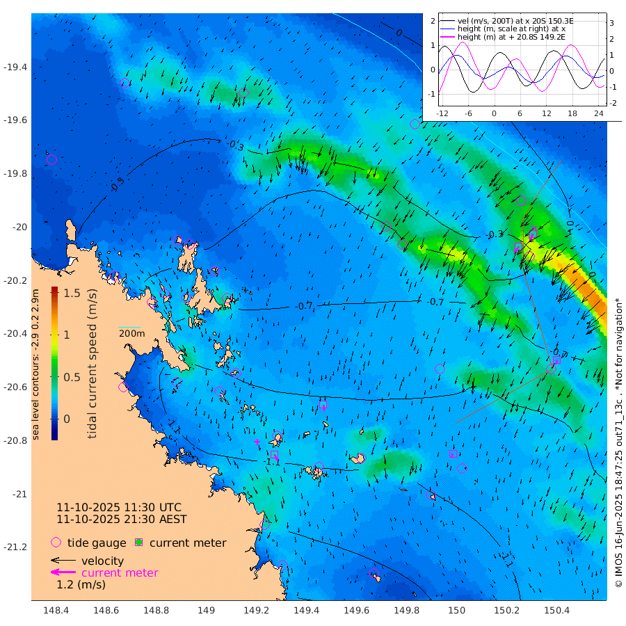 30cm/s 153T +10cm/s rms + 2cm/s 5T. Brampton I 18m 29cm/s 169T +9cm/s rms + 6cm/s 66T. Wigton I 38m 20cm/s -165T +7cm/s rms + 8cm/s 141T. Tern I 47m 36cm/s -156T +7cm/s rms + 12cm/s 54T. N Bugatti Rf 64m 37cm/s -146T +3cm/s rms + 13cm/s 178T. W Bugatti Rf 70m 20cm/s -166T +3cm/s rms + 3cm/s -130T. Creal Rf 69m -26cm Holbourne I -89cm Tern I -35cm Bugatti Rf -56cm Creal Rf -20cm White Tip I -21cm Wallaby Reef -11cm Kennedy Reef -10cm Unnamed Reef No. 2 -51cm Tideway Reef -45cm Hayman Island -60cm Square Reef -49cm Double Bay -68cm Molle Island -60cm Cid Harbour -49cm Hook Island -60cm Border Island -64cm Haslewood Island -63cm Shute Harbour -84cm Thomas Island -82cm Credlin Reef -105cm East Repulse Island -89cm Blacksmith Island -107cm Laguna Quays -99cm Carlisle Island (Off) -99cm St. Bees Island -95cm Scawfell Island -97cm Penrith Island -119cm Mackay Outer Harbour -125cm Hay Point -110cm Prudhoe Island