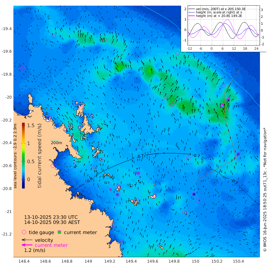 9cm/s 15T +10cm/s rms + 2cm/s 5T. Brampton I 18m 11cm/s -23T +9cm/s rms + 6cm/s 66T. Wigton I 38m 1cm/s -61T +7cm/s rms + 8cm/s 141T. Tern I 47m 11cm/s -13T +7cm/s rms + 12cm/s 54T. N Bugatti Rf 64m 23cm/s 31T +3cm/s rms + 13cm/s 178T. W Bugatti Rf 70m 7cm/s -1T +3cm/s rms + 3cm/s -130T. Creal Rf 69m -72cm Holbourne I -86cm Tern I -57cm Bugatti Rf -63cm Creal Rf -52cm White Tip I -58cm Wallaby Reef -66cm Kennedy Reef -59cm Unnamed Reef No. 2 -66cm Tideway Reef -70cm Hayman Island -68cm Square Reef -82cm Double Bay -82cm Molle Island -67cm Cid Harbour -74cm Hook Island -66cm Border Island -67cm Haslewood Island -73cm Shute Harbour -71cm Thomas Island -79cm Credlin Reef -86cm East Repulse Island -72cm Blacksmith Island -79cm Laguna Quays -90cm Carlisle Island (Off) -82cm St. Bees Island -70cm Scawfell Island -86cm Penrith Island -89cm Mackay Outer Harbour -94cm Hay Point -90cm Prudhoe Island