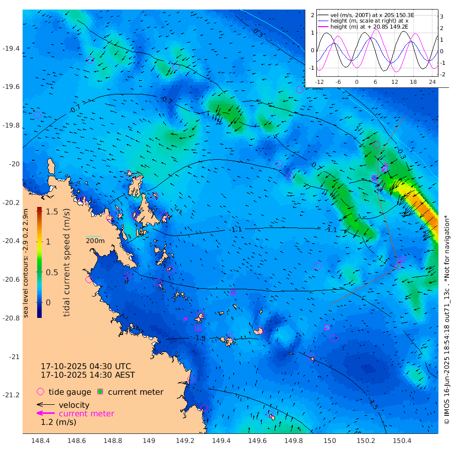 11cm/s 171T +10cm/s rms + 2cm/s 5T. Brampton I 18m 11cm/s -148T +9cm/s rms + 6cm/s 66T. Wigton I 38m 21cm/s -140T +7cm/s rms + 8cm/s 141T. Tern I 47m 24cm/s -129T +7cm/s rms + 12cm/s 54T. N Bugatti Rf 64m 11cm/s -105T +3cm/s rms + 13cm/s 178T. W Bugatti Rf 70m 15cm/s -107T +3cm/s rms + 3cm/s -130T. Creal Rf 69m -74cm Holbourne I -163cm Tern I -75cm Bugatti Rf -110cm Creal Rf -50cm White Tip I -64cm Wallaby Reef -52cm Kennedy Reef -40cm Unnamed Reef No. 2 -103cm Tideway Reef -93cm Hayman Island -131cm Square Reef -97cm Double Bay -98cm Molle Island -116cm Cid Harbour -95cm Hook Island -106cm Border Island -116cm Haslewood Island -116cm Shute Harbour -142cm Thomas Island -150cm Credlin Reef -165cm East Repulse Island -148cm Blacksmith Island -165cm Laguna Quays -164cm Carlisle Island (Off) -186cm St. Bees Island -156cm Scawfell Island -162cm Penrith Island -185cm Mackay Outer Harbour -196cm Hay Point -199cm Prudhoe Island