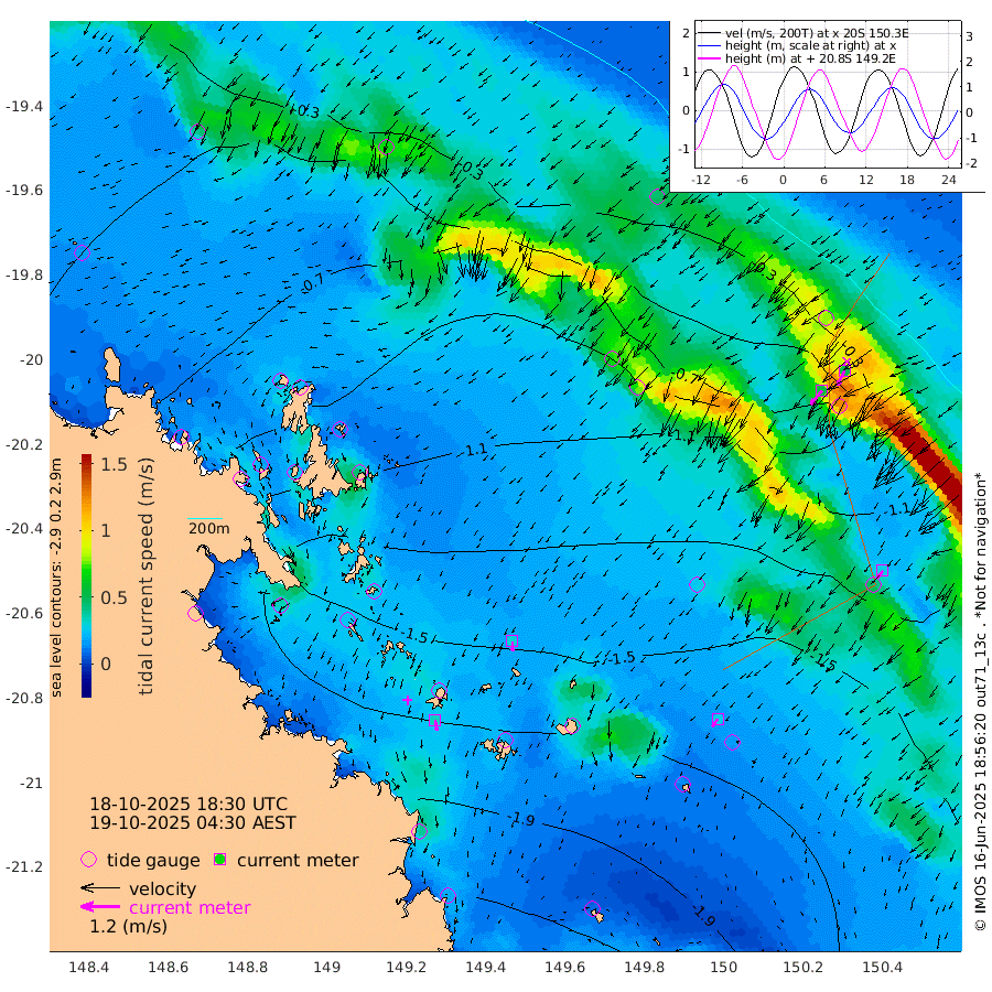 33cm/s 168T +10cm/s rms + 2cm/s 5T. Brampton I 18m 31cm/s 179T +9cm/s rms + 6cm/s 66T. Wigton I 38m 28cm/s -148T +7cm/s rms + 8cm/s 141T. Tern I 47m 50cm/s -156T +7cm/s rms + 12cm/s 54T. N Bugatti Rf 64m 53cm/s -140T +3cm/s rms + 13cm/s 178T. W Bugatti Rf 70m 27cm/s -144T +3cm/s rms + 3cm/s -130T. Creal Rf 69m -59cm Holbourne I -164cm Tern I -72cm Bugatti Rf -112cm Creal Rf -42cm White Tip I -52cm Wallaby Reef -27cm Kennedy Reef -24cm Unnamed Reef No. 2 -99cm Tideway Reef -78cm Hayman Island -129cm Square Reef -96cm Double Bay -113cm Molle Island -113cm Cid Harbour -90cm Hook Island -103cm Border Island -121cm Haslewood Island -115cm Shute Harbour -152cm Thomas Island -147cm Credlin Reef -170cm East Repulse Island -160cm Blacksmith Island -184cm Laguna Quays -169cm Carlisle Island (Off) -189cm St. Bees Island -165cm Scawfell Island -168cm Penrith Island -203cm Mackay Outer Harbour -213cm Hay Point -210cm Prudhoe Island