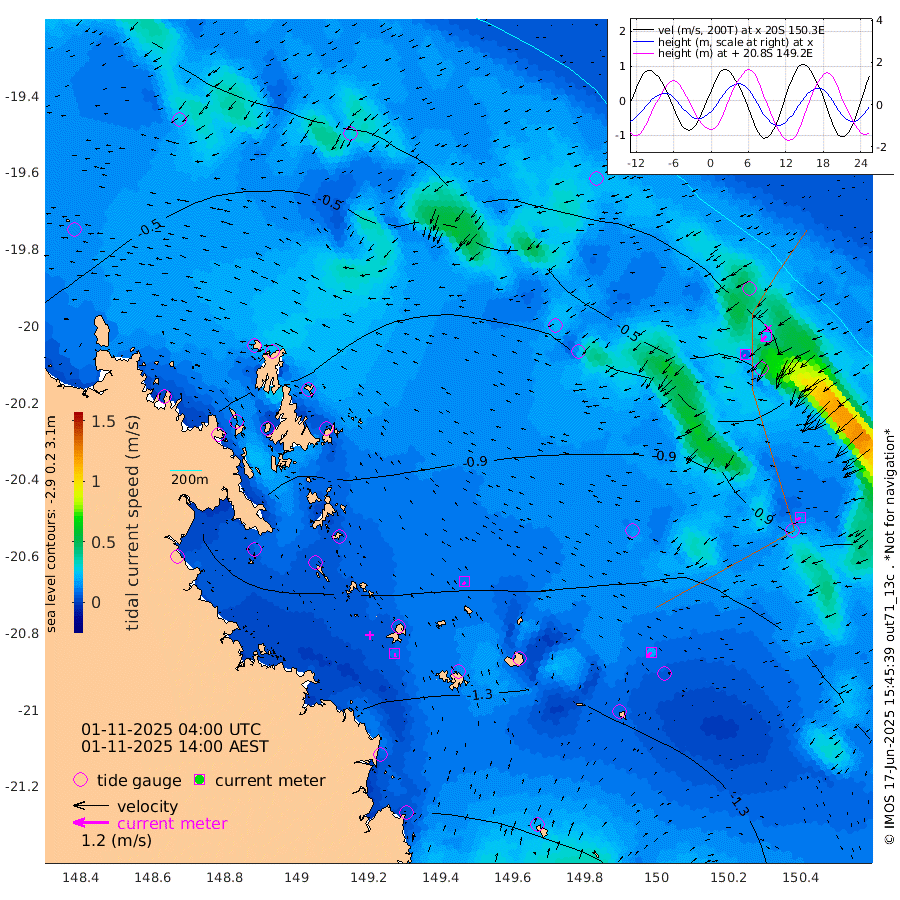 12cm/s 172T +10cm/s rms + 2cm/s 5T. Brampton I 18m 11cm/s -153T +9cm/s rms + 6cm/s 66T. Wigton I 38m 19cm/s -142T +7cm/s rms + 8cm/s 141T. Tern I 47m 23cm/s -136T +7cm/s rms + 12cm/s 54T. N Bugatti Rf 64m 9cm/s -128T +3cm/s rms + 13cm/s 178T. W Bugatti Rf 70m 15cm/s -113T +3cm/s rms + 3cm/s -130T. Creal Rf 69m -53cm Holbourne I -135cm Tern I -56cm Bugatti Rf -90cm Creal Rf -33cm White Tip I -46cm Wallaby Reef -37cm Kennedy Reef -19cm Unnamed Reef No. 2 -78cm Tideway Reef -73cm Hayman Island -108cm Square Reef -64cm Double Bay -75cm Molle Island -96cm Cid Harbour -67cm Hook Island -89cm Border Island -91cm Haslewood Island -91cm Shute Harbour -117cm Thomas Island -119cm Credlin Reef -127cm East Repulse Island -133cm Blacksmith Island -139cm Laguna Quays -128cm Carlisle Island (Off) -154cm St. Bees Island -139cm Scawfell Island -140cm Penrith Island -157cm Mackay Outer Harbour -167cm Hay Point -166cm Prudhoe Island