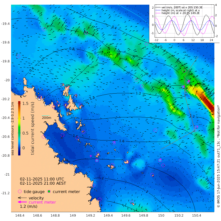 20cm/s -7T +10cm/s rms + 2cm/s 5T. Brampton I 18m 15cm/s 14T +9cm/s rms + 6cm/s 66T. Wigton I 38m 25cm/s 37T +7cm/s rms + 8cm/s 141T. Tern I 47m 35cm/s 34T +7cm/s rms + 12cm/s 54T. N Bugatti Rf 64m 26cm/s 44T +3cm/s rms + 13cm/s 178T. W Bugatti Rf 70m 20cm/s 60T +3cm/s rms + 3cm/s -130T. Creal Rf 69m 78cm Holbourne I 190cm Tern I 87cm Bugatti Rf 130cm Creal Rf 56cm White Tip I 69cm Wallaby Reef 52cm Kennedy Reef 37cm Unnamed Reef No. 2 112cm Tideway Reef 100cm Hayman Island 155cm Square Reef 91cm Double Bay 124cm Molle Island 136cm Cid Harbour 100cm Hook Island 128cm Border Island 136cm Haslewood Island 131cm Shute Harbour 165cm Thomas Island 169cm Credlin Reef 181cm East Repulse Island 180cm Blacksmith Island 196cm Laguna Quays 184cm Carlisle Island (Off) 197cm St. Bees Island 186cm Scawfell Island 199cm Penrith Island 221cm Mackay Outer Harbour 234cm Hay Point 230cm Prudhoe Island