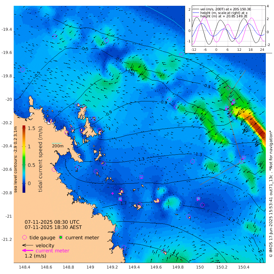 26cm/s 148T +10cm/s rms + 2cm/s 5T. Brampton I 18m 15cm/s 178T +9cm/s rms + 6cm/s 66T. Wigton I 38m 25cm/s -158T +7cm/s rms + 8cm/s 141T. Tern I 47m 32cm/s -147T +7cm/s rms + 12cm/s 54T. N Bugatti Rf 64m 27cm/s -139T +3cm/s rms + 13cm/s 178T. W Bugatti Rf 70m 20cm/s -143T +3cm/s rms + 3cm/s -130T. Creal Rf 69m -54cm Holbourne I -175cm Tern I -72cm Bugatti Rf -115cm Creal Rf -43cm White Tip I -41cm Wallaby Reef -32cm Kennedy Reef -27cm Unnamed Reef No. 2 -87cm Tideway Reef -79cm Hayman Island -114cm Square Reef -82cm Double Bay -97cm Molle Island -107cm Cid Harbour -85cm Hook Island -99cm Border Island -110cm Haslewood Island -108cm Shute Harbour -146cm Thomas Island -150cm Credlin Reef -169cm East Repulse Island -157cm Blacksmith Island -175cm Laguna Quays -169cm Carlisle Island (Off) -187cm St. Bees Island -170cm Scawfell Island -179cm Penrith Island -209cm Mackay Outer Harbour -224cm Hay Point -214cm Prudhoe Island