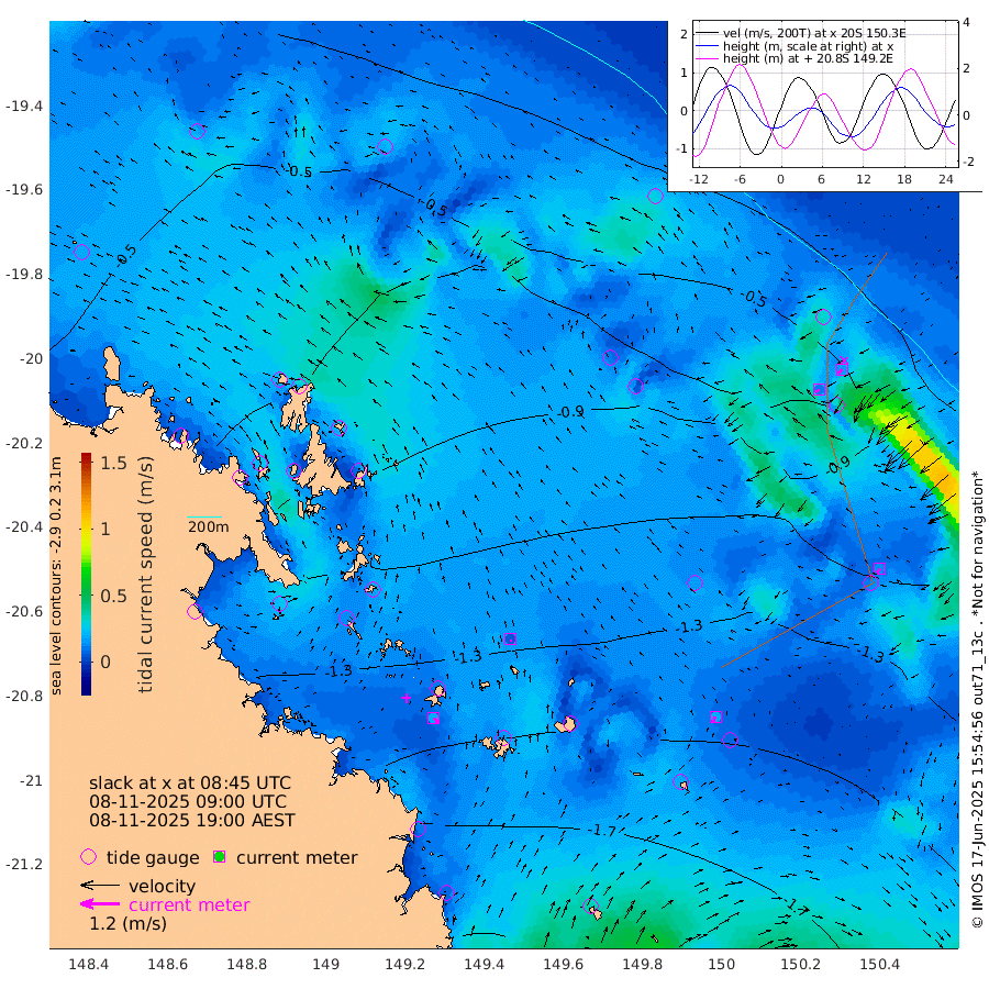 18cm/s 135T +10cm/s rms + 2cm/s 5T. Brampton I 18m 5cm/s -180T +9cm/s rms + 6cm/s 66T. Wigton I 38m 19cm/s -161T +7cm/s rms + 8cm/s 141T. Tern I 47m 17cm/s -138T +7cm/s rms + 12cm/s 54T. N Bugatti Rf 64m 12cm/s -126T +3cm/s rms + 13cm/s 178T. W Bugatti Rf 70m 14cm/s -139T +3cm/s rms + 3cm/s -130T. Creal Rf 69m -53cm Holbourne I -159cm Tern I -69cm Bugatti Rf -105cm Creal Rf -45cm White Tip I -40cm Wallaby Reef -34cm Kennedy Reef -33cm Unnamed Reef No. 2 -78cm Tideway Reef -75cm Hayman Island -99cm Square Reef -83cm Double Bay -89cm Molle Island -93cm Cid Harbour -80cm Hook Island -84cm Border Island -96cm Haslewood Island -96cm Shute Harbour -128cm Thomas Island -134cm Credlin Reef -149cm East Repulse Island -134cm Blacksmith Island -151cm Laguna Quays -151cm Carlisle Island (Off) -165cm St. Bees Island -150cm Scawfell Island -161cm Penrith Island -185cm Mackay Outer Harbour -200cm Hay Point -193cm Prudhoe Island