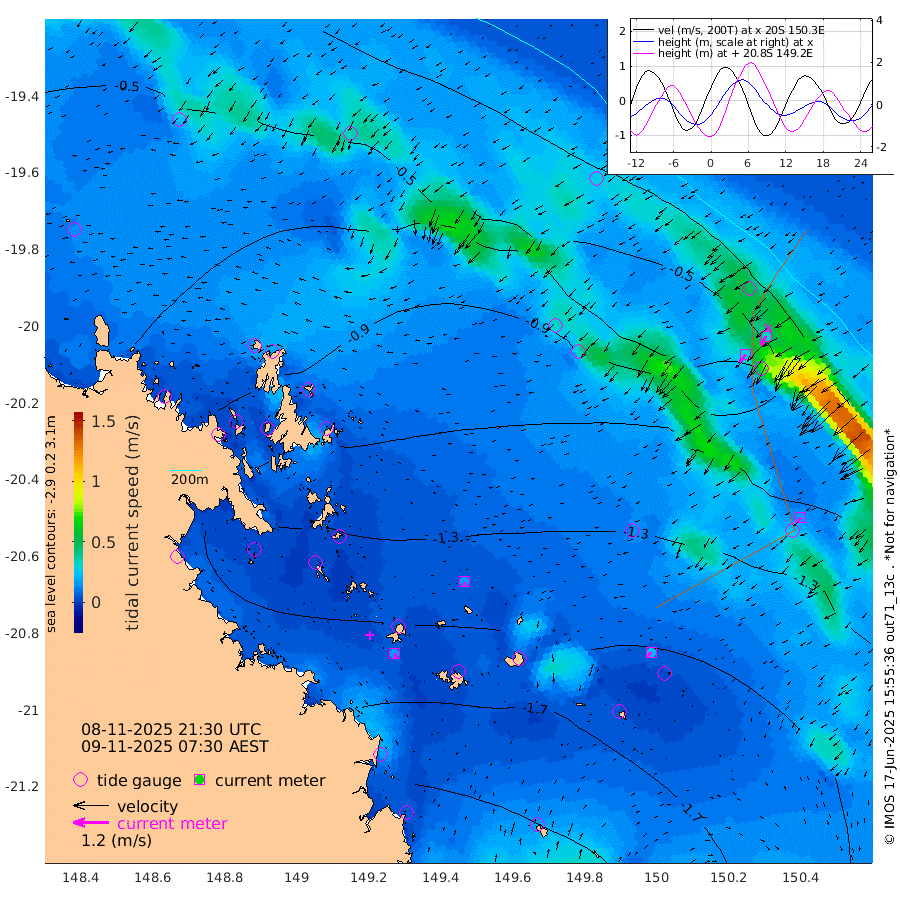 17cm/s 165T +10cm/s rms + 2cm/s 5T. Brampton I 18m 18cm/s -173T +9cm/s rms + 6cm/s 66T. Wigton I 38m 21cm/s -145T +7cm/s rms + 8cm/s 141T. Tern I 47m 35cm/s -150T +7cm/s rms + 12cm/s 54T. N Bugatti Rf 64m 31cm/s -141T +3cm/s rms + 13cm/s 178T. W Bugatti Rf 70m 17cm/s -138T +3cm/s rms + 3cm/s -130T. Creal Rf 69m -68cm Holbourne I -153cm Tern I -68cm Bugatti Rf -101cm Creal Rf -44cm White Tip I -55cm Wallaby Reef -48cm Kennedy Reef -33cm Unnamed Reef No. 2 -92cm Tideway Reef -82cm Hayman Island -113cm Square Reef -95cm Double Bay -114cm Molle Island -110cm Cid Harbour -92cm Hook Island -103cm Border Island -114cm Haslewood Island -111cm Shute Harbour -136cm Thomas Island -136cm Credlin Reef -161cm East Repulse Island -152cm Blacksmith Island -167cm Laguna Quays -162cm Carlisle Island (Off) -173cm St. Bees Island -153cm Scawfell Island -161cm Penrith Island -185cm Mackay Outer Harbour -196cm Hay Point -182cm Prudhoe Island