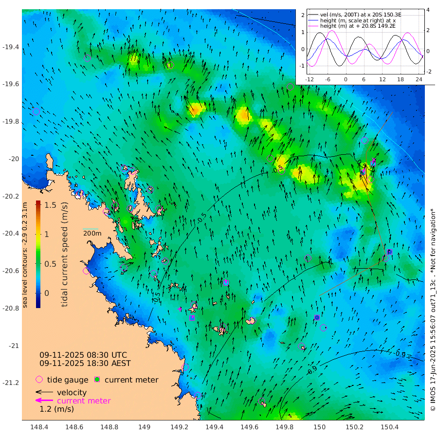 15cm/s 24T +10cm/s rms + 2cm/s 5T. Brampton I 18m 25cm/s -9T +9cm/s rms + 6cm/s 66T. Wigton I 38m 2cm/s 160T +7cm/s rms + 8cm/s 141T. Tern I 47m 26cm/s 11T +7cm/s rms + 12cm/s 54T. N Bugatti Rf 64m 31cm/s 24T +3cm/s rms + 13cm/s 178T. W Bugatti Rf 70m 7cm/s -26T +3cm/s rms + 3cm/s -130T. Creal Rf 69m -37cm Holbourne I -101cm Tern I -46cm Bugatti Rf -67cm Creal Rf -34cm White Tip I -23cm Wallaby Reef -29cm Kennedy Reef -33cm Unnamed Reef No. 2 -37cm Tideway Reef -44cm Hayman Island -47cm Square Reef -57cm Double Bay -39cm Molle Island -44cm Cid Harbour -47cm Hook Island -35cm Border Island -44cm Haslewood Island -49cm Shute Harbour -65cm Thomas Island -74cm Credlin Reef -74cm East Repulse Island -64cm Blacksmith Island -70cm Laguna Quays -80cm Carlisle Island (Off) -92cm St. Bees Island -81cm Scawfell Island -95cm Penrith Island -103cm Mackay Outer Harbour -116cm Hay Point -121cm Prudhoe Island