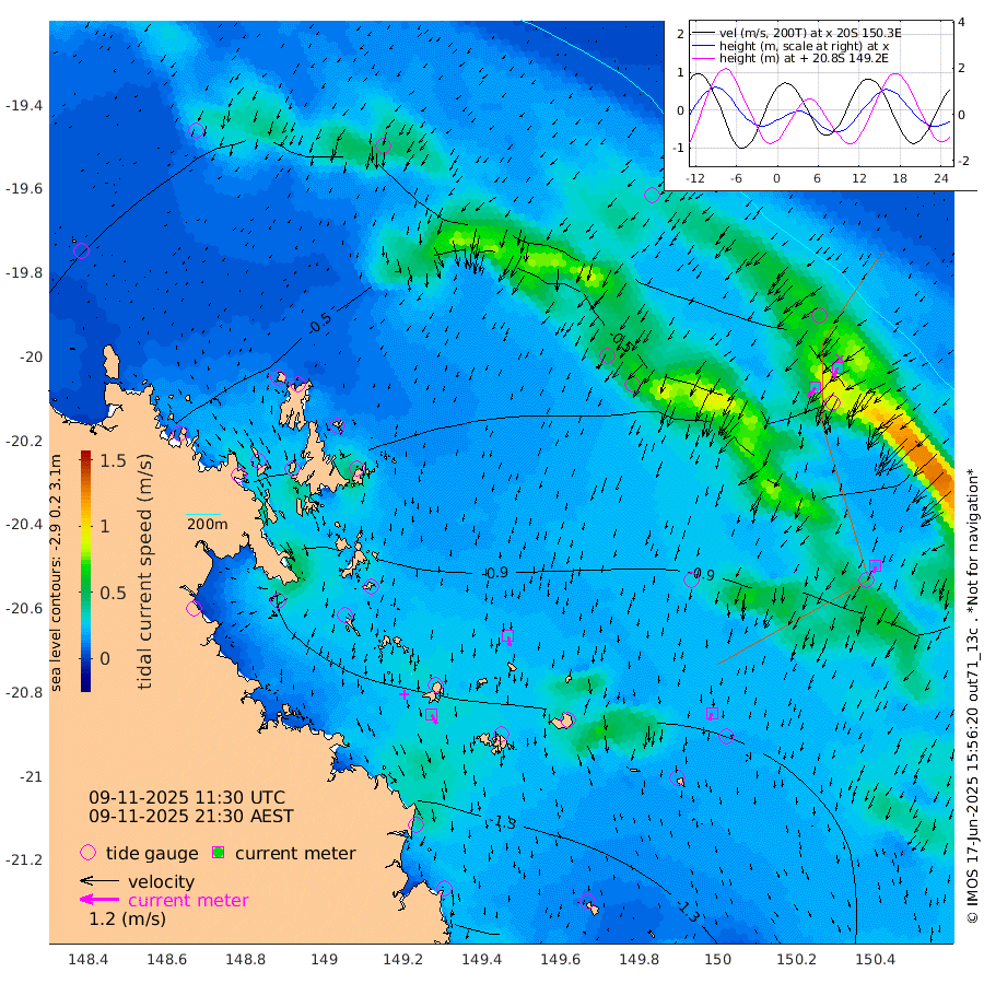32cm/s 152T +10cm/s rms + 2cm/s 5T. Brampton I 18m 31cm/s 169T +9cm/s rms + 6cm/s 66T. Wigton I 38m 22cm/s -164T +7cm/s rms + 8cm/s 141T. Tern I 47m 36cm/s -155T +7cm/s rms + 12cm/s 54T. N Bugatti Rf 64m 36cm/s -144T +3cm/s rms + 13cm/s 178T. W Bugatti Rf 70m 20cm/s -164T +3cm/s rms + 3cm/s -130T. Creal Rf 69m -36cm Holbourne I -99cm Tern I -46cm Bugatti Rf -66cm Creal Rf -31cm White Tip I -32cm Wallaby Reef -19cm Kennedy Reef -20cm Unnamed Reef No. 2 -64cm Tideway Reef -59cm Hayman Island -76cm Square Reef -62cm Double Bay -83cm Molle Island -71cm Cid Harbour -60cm Hook Island -69cm Border Island -75cm Haslewood Island -75cm Shute Harbour -95cm Thomas Island -94cm Credlin Reef -115cm East Repulse Island -100cm Blacksmith Island -118cm Laguna Quays -109cm Carlisle Island (Off) -112cm St. Bees Island -105cm Scawfell Island -110cm Penrith Island -130cm Mackay Outer Harbour -135cm Hay Point -123cm Prudhoe Island