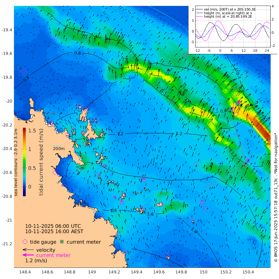 30cm/s -21T +10cm/s rms + 2cm/s 5T. Brampton I 18m 33cm/s -6T +9cm/s rms + 6cm/s 66T. Wigton I 38m 22cm/s 23T +7cm/s rms + 8cm/s 141T. Tern I 47m 46cm/s 28T +7cm/s rms + 12cm/s 54T. N Bugatti Rf 64m 39cm/s 35T +3cm/s rms + 13cm/s 178T. W Bugatti Rf 70m 17cm/s 25T +3cm/s rms + 3cm/s -130T. Creal Rf 69m 89cm Holbourne I 145cm Tern I 87cm Bugatti Rf 107cm Creal Rf 70cm White Tip I 83cm Wallaby Reef 67cm Kennedy Reef 60cm Unnamed Reef No. 2 118cm Tideway Reef 107cm Hayman Island 138cm Square Reef 114cm Double Bay 146cm Molle Island 126cm Cid Harbour 112cm Hook Island 125cm Border Island 130cm Haslewood Island 129cm Shute Harbour 145cm Thomas Island 148cm Credlin Reef 171cm East Repulse Island 153cm Blacksmith Island 173cm Laguna Quays 168cm Carlisle Island (Off) 168cm St. Bees Island 150cm Scawfell Island 161cm Penrith Island 179cm Mackay Outer Harbour 184cm Hay Point 170cm Prudhoe Island