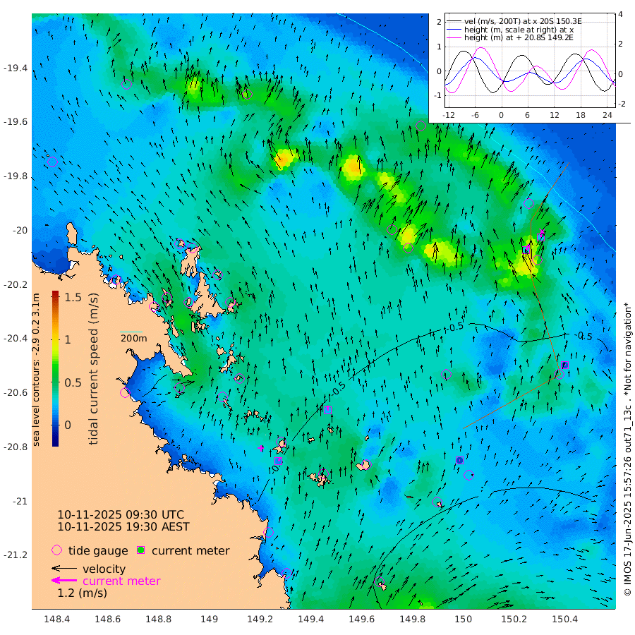15cm/s 28T +10cm/s rms + 2cm/s 5T. Brampton I 18m 23cm/s -6T +9cm/s rms + 6cm/s 66T. Wigton I 38m 2cm/s 111T +7cm/s rms + 8cm/s 141T. Tern I 47m 27cm/s 14T +7cm/s rms + 12cm/s 54T. N Bugatti Rf 64m 31cm/s 26T +3cm/s rms + 13cm/s 178T. W Bugatti Rf 70m 6cm/s -5T +3cm/s rms + 3cm/s -130T. Creal Rf 69m -34cm Holbourne I -82cm Tern I -39cm Bugatti Rf -54cm Creal Rf -32cm White Tip I -21cm Wallaby Reef -28cm Kennedy Reef -33cm Unnamed Reef No. 2 -30cm Tideway Reef -40cm Hayman Island -35cm Square Reef -55cm Double Bay -36cm Molle Island -33cm Cid Harbour -42cm Hook Island -26cm Border Island -33cm Haslewood Island -41cm Shute Harbour -52cm Thomas Island -58cm Credlin Reef -58cm East Repulse Island -48cm Blacksmith Island -54cm Laguna Quays -63cm Carlisle Island (Off) -70cm St. Bees Island -63cm Scawfell Island -78cm Penrith Island -82cm Mackay Outer Harbour -93cm Hay Point -97cm Prudhoe Island