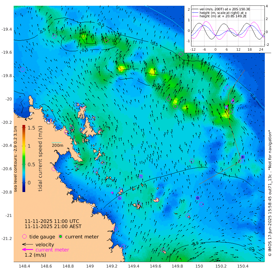 13cm/s 44T +10cm/s rms + 2cm/s 5T. Brampton I 18m 16cm/s -5T +9cm/s rms + 6cm/s 66T. Wigton I 38m 3cm/s 148T +7cm/s rms + 8cm/s 141T. Tern I 47m 24cm/s 12T +7cm/s rms + 12cm/s 54T. N Bugatti Rf 64m 30cm/s 25T +3cm/s rms + 13cm/s 178T. W Bugatti Rf 70m 4cm/s -4T +3cm/s rms + 3cm/s -130T. Creal Rf 69m -51cm Holbourne I -94cm Tern I -53cm Bugatti Rf -66cm Creal Rf -47cm White Tip I -41cm Wallaby Reef -44cm Kennedy Reef -48cm Unnamed Reef No. 2 -52cm Tideway Reef -61cm Hayman Island -56cm Square Reef -77cm Double Bay -65cm Molle Island -52cm Cid Harbour -61cm Hook Island -45cm Border Island -52cm Haslewood Island -61cm Shute Harbour -70cm Thomas Island -76cm Credlin Reef -79cm East Repulse Island -65cm Blacksmith Island -74cm Laguna Quays -82cm Carlisle Island (Off) -85cm St. Bees Island -76cm Scawfell Island -95cm Penrith Island -98cm Mackay Outer Harbour -108cm Hay Point -110cm Prudhoe Island