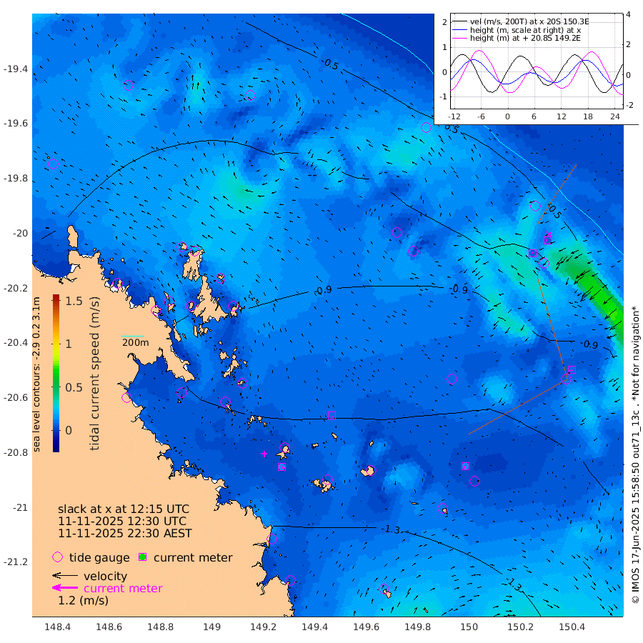 15cm/s 129T +10cm/s rms + 2cm/s 5T. Brampton I 18m 7cm/s 171T +9cm/s rms + 6cm/s 66T. Wigton I 38m 13cm/s -164T +7cm/s rms + 8cm/s 141T. Tern I 47m 6cm/s -109T +7cm/s rms + 12cm/s 54T. N Bugatti Rf 64m 5cm/s -41T +3cm/s rms + 13cm/s 178T. W Bugatti Rf 70m 7cm/s -139T +3cm/s rms + 3cm/s -130T. Creal Rf 69m -69cm Holbourne I -126cm Tern I -73cm Bugatti Rf -91cm Creal Rf -60cm White Tip I -63cm Wallaby Reef -52cm Kennedy Reef -56cm Unnamed Reef No. 2 -87cm Tideway Reef -89cm Hayman Island -100cm Square Reef -102cm Double Bay -107cm Molle Island -91cm Cid Harbour -87cm Hook Island -83cm Border Island -92cm Haslewood Island -98cm Shute Harbour -112cm Thomas Island -117cm Credlin Reef -131cm East Repulse Island -112cm Blacksmith Island -128cm Laguna Quays -129cm Carlisle Island (Off) -135cm St. Bees Island -122cm Scawfell Island -135cm Penrith Island -146cm Mackay Outer Harbour -154cm Hay Point -151cm Prudhoe Island