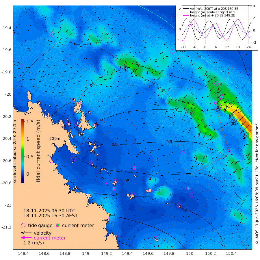 22cm/s 157T +10cm/s rms + 2cm/s 5T. Brampton I 18m 18cm/s -176T +9cm/s rms + 6cm/s 66T. Wigton I 38m 21cm/s -156T +7cm/s rms + 8cm/s 141T. Tern I 47m 31cm/s -148T +7cm/s rms + 12cm/s 54T. N Bugatti Rf 64m 24cm/s -137T +3cm/s rms + 13cm/s 178T. W Bugatti Rf 70m 19cm/s -145T +3cm/s rms + 3cm/s -130T. Creal Rf 69m -41cm Holbourne I -128cm Tern I -48cm Bugatti Rf -83cm Creal Rf -25cm White Tip I -24cm Wallaby Reef -16cm Kennedy Reef -12cm Unnamed Reef No. 2 -64cm Tideway Reef -51cm Hayman Island -86cm Square Reef -72cm Double Bay -58cm Molle Island -68cm Cid Harbour -65cm Hook Island -65cm Border Island -74cm Haslewood Island -77cm Shute Harbour -108cm Thomas Island -106cm Credlin Reef -118cm East Repulse Island -107cm Blacksmith Island -130cm Laguna Quays -119cm Carlisle Island (Off) -146cm St. Bees Island -122cm Scawfell Island -120cm Penrith Island -153cm Mackay Outer Harbour -164cm Hay Point -173cm Prudhoe Island