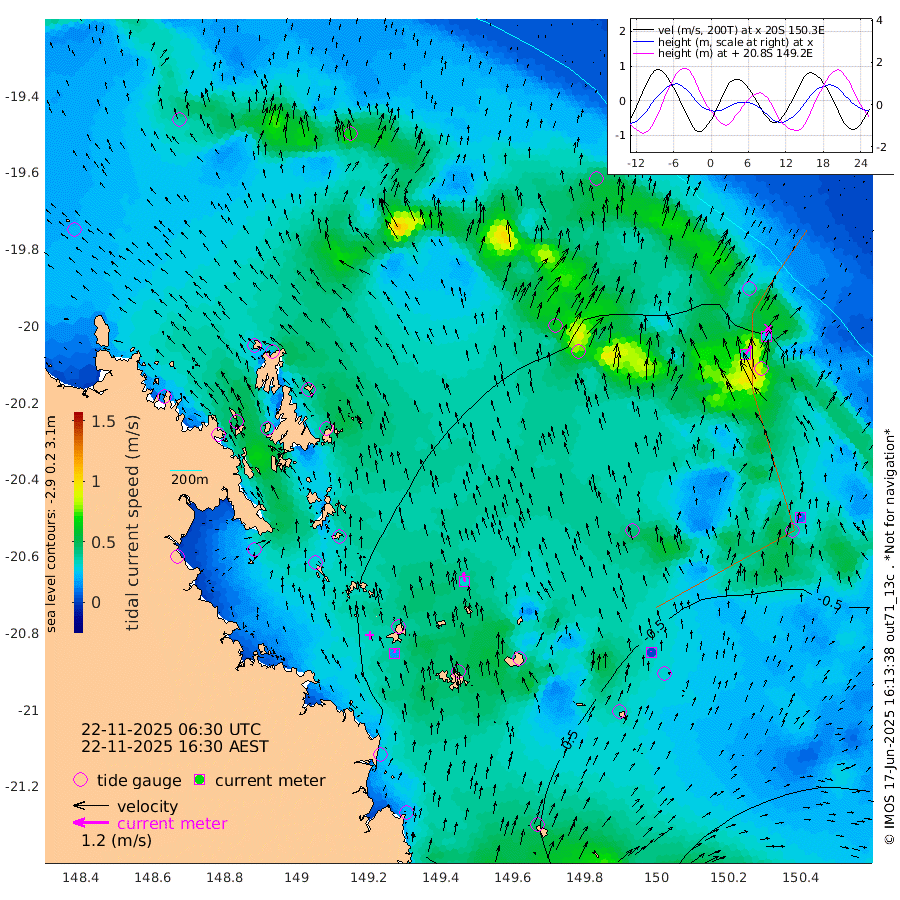 15cm/s 4T +10cm/s rms + 2cm/s 5T. Brampton I 18m 30cm/s -11T +9cm/s rms + 6cm/s 66T. Wigton I 38m 2cm/s -9T +7cm/s rms + 8cm/s 141T. Tern I 47m 28cm/s 13T +7cm/s rms + 12cm/s 54T. N Bugatti Rf 64m 34cm/s 29T +3cm/s rms + 13cm/s 178T. W Bugatti Rf 70m 11cm/s -25T +3cm/s rms + 3cm/s -130T. Creal Rf 69m -16cm Holbourne I -76cm Tern I -28cm Bugatti Rf -48cm Creal Rf -18cm White Tip I -11cm Wallaby Reef -19cm Kennedy Reef -13cm Unnamed Reef No. 2 -17cm Tideway Reef -25cm Hayman Island -33cm Square Reef -9cm Double Bay -11cm Molle Island -36cm Cid Harbour -16cm Hook Island -26cm Border Island -26cm Haslewood Island -28cm Shute Harbour -43cm Thomas Island -52cm Credlin Reef -42cm East Repulse Island -54cm Blacksmith Island -44cm Laguna Quays -47cm Carlisle Island (Off) -56cm St. Bees Island -62cm Scawfell Island -73cm Penrith Island -72cm Mackay Outer Harbour -83cm Hay Point -84cm Prudhoe Island
