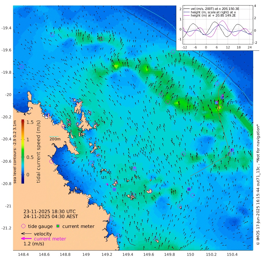 18cm/s -13T +10cm/s rms + 2cm/s 5T. Brampton I 18m 25cm/s -13T +9cm/s rms + 6cm/s 66T. Wigton I 38m 5cm/s 22T +7cm/s rms + 8cm/s 141T. Tern I 47m 14cm/s 0T +7cm/s rms + 12cm/s 54T. N Bugatti Rf 64m 24cm/s 31T +3cm/s rms + 13cm/s 178T. W Bugatti Rf 70m 13cm/s -11T +3cm/s rms + 3cm/s -130T. Creal Rf 69m -77cm Holbourne I -102cm Tern I -78cm Bugatti Rf -86cm Creal Rf -72cm White Tip I -75cm Wallaby Reef -74cm Kennedy Reef -71cm Unnamed Reef No. 2 -76cm Tideway Reef -80cm Hayman Island -96cm Square Reef -76cm Double Bay -87cm Molle Island -92cm Cid Harbour -76cm Hook Island -83cm Border Island -85cm Haslewood Island -83cm Shute Harbour -82cm Thomas Island -98cm Credlin Reef -91cm East Repulse Island -101cm Blacksmith Island -87cm Laguna Quays -100cm Carlisle Island (Off) -116cm St. Bees Island -109cm Scawfell Island -110cm Penrith Island -99cm Mackay Outer Harbour -105cm Hay Point -100cm Prudhoe Island