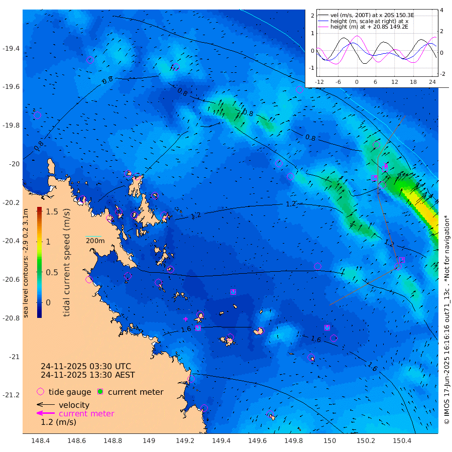 19cm/s -34T +10cm/s rms + 2cm/s 5T. Brampton I 18m 13cm/s -4T +9cm/s rms + 6cm/s 66T. Wigton I 38m 17cm/s 16T +7cm/s rms + 8cm/s 141T. Tern I 47m 27cm/s 32T +7cm/s rms + 12cm/s 54T. N Bugatti Rf 64m 19cm/s 31T +3cm/s rms + 13cm/s 178T. W Bugatti Rf 70m 12cm/s 31T +3cm/s rms + 3cm/s -130T. Creal Rf 69m 93cm Holbourne I 164cm Tern I 98cm Bugatti Rf 124cm Creal Rf 80cm White Tip I 83cm Wallaby Reef 77cm Kennedy Reef 66cm Unnamed Reef No. 2 113cm Tideway Reef 107cm Hayman Island 142cm Square Reef 112cm Double Bay 140cm Molle Island 123cm Cid Harbour 111cm Hook Island 122cm Border Island 121cm Haslewood Island 125cm Shute Harbour 146cm Thomas Island 149cm Credlin Reef 154cm East Repulse Island 160cm Blacksmith Island 169cm Laguna Quays 159cm Carlisle Island (Off) 170cm St. Bees Island 161cm Scawfell Island 178cm Penrith Island 189cm Mackay Outer Harbour 198cm Hay Point 192cm Prudhoe Island