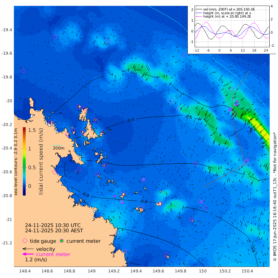 23cm/s 145T +10cm/s rms + 2cm/s 5T. Brampton I 18m 16cm/s 168T +9cm/s rms + 6cm/s 66T. Wigton I 38m 16cm/s -164T +7cm/s rms + 8cm/s 141T. Tern I 47m 18cm/s -151T +7cm/s rms + 12cm/s 54T. N Bugatti Rf 64m 18cm/s -147T +3cm/s rms + 13cm/s 178T. W Bugatti Rf 70m 13cm/s -164T +3cm/s rms + 3cm/s -130T. Creal Rf 69m -28cm Holbourne I -88cm Tern I -38cm Bugatti Rf -58cm Creal Rf -25cm White Tip I -21cm Wallaby Reef -21cm Kennedy Reef -13cm Unnamed Reef No. 2 -46cm Tideway Reef -43cm Hayman Island -59cm Square Reef -40cm Double Bay -60cm Molle Island -50cm Cid Harbour -44cm Hook Island -51cm Border Island -49cm Haslewood Island -54cm Shute Harbour -76cm Thomas Island -71cm Credlin Reef -77cm East Repulse Island -78cm Blacksmith Island -90cm Laguna Quays -76cm Carlisle Island (Off) -74cm St. Bees Island -74cm Scawfell Island -94cm Penrith Island -108cm Mackay Outer Harbour -115cm Hay Point -112cm Prudhoe Island