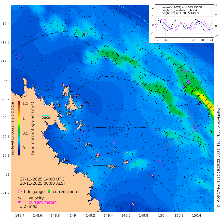 22cm/s 157T +10cm/s rms + 2cm/s 5T. Brampton I 18m 20cm/s 173T +9cm/s rms + 6cm/s 66T. Wigton I 38m 15cm/s -159T +7cm/s rms + 8cm/s 141T. Tern I 47m 21cm/s -147T +7cm/s rms + 12cm/s 54T. N Bugatti Rf 64m 19cm/s -138T +3cm/s rms + 13cm/s 178T. W Bugatti Rf 70m 11cm/s -155T +3cm/s rms + 3cm/s -130T. Creal Rf 69m -57cm Holbourne I -103cm Tern I -60cm Bugatti Rf -77cm Creal Rf -48cm White Tip I -55cm Wallaby Reef -46cm Kennedy Reef -37cm Unnamed Reef No. 2 -77cm Tideway Reef -71cm Hayman Island -97cm Square Reef -68cm Double Bay -98cm Molle Island -81cm Cid Harbour -71cm Hook Island -79cm Border Island -79cm Haslewood Island -83cm Shute Harbour -99cm Thomas Island -96cm Credlin Reef -103cm East Repulse Island -100cm Blacksmith Island -115cm Laguna Quays -100cm Carlisle Island (Off) -97cm St. Bees Island -95cm Scawfell Island -110cm Penrith Island -123cm Mackay Outer Harbour -127cm Hay Point -127cm Prudhoe Island