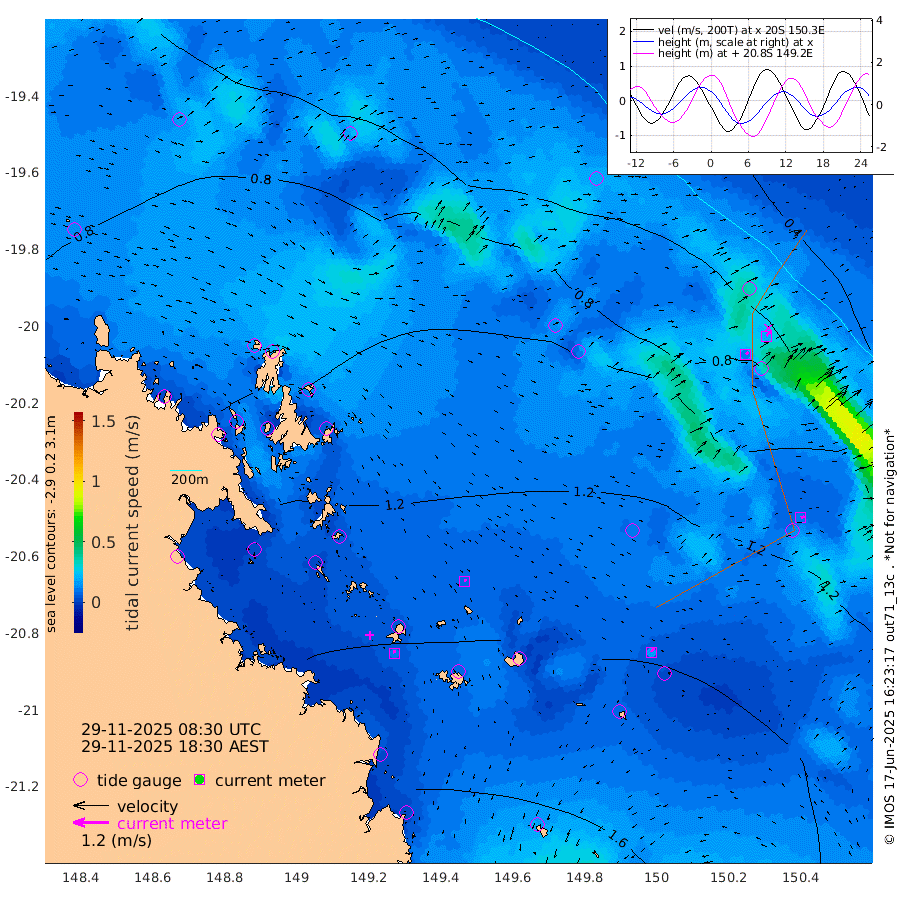 11cm/s -10T +10cm/s rms + 2cm/s 5T. Brampton I 18m 8cm/s 17T +9cm/s rms + 6cm/s 66T. Wigton I 38m 16cm/s 37T +7cm/s rms + 8cm/s 141T. Tern I 47m 19cm/s 42T +7cm/s rms + 12cm/s 54T. N Bugatti Rf 64m 11cm/s 51T +3cm/s rms + 13cm/s 178T. W Bugatti Rf 70m 11cm/s 71T +3cm/s rms + 3cm/s -130T. Creal Rf 69m 79cm Holbourne I 150cm Tern I 81cm Bugatti Rf 108cm Creal Rf 61cm White Tip I 74cm Wallaby Reef 61cm Kennedy Reef 50cm Unnamed Reef No. 2 102cm Tideway Reef 96cm Hayman Island 132cm Square Reef 89cm Double Bay 122cm Molle Island 119cm Cid Harbour 93cm Hook Island 113cm Border Island 117cm Haslewood Island 115cm Shute Harbour 133cm Thomas Island 140cm Credlin Reef 149cm East Repulse Island 145cm Blacksmith Island 157cm Laguna Quays 151cm Carlisle Island (Off) 151cm St. Bees Island 147cm Scawfell Island 162cm Penrith Island 172cm Mackay Outer Harbour 181cm Hay Point 175cm Prudhoe Island