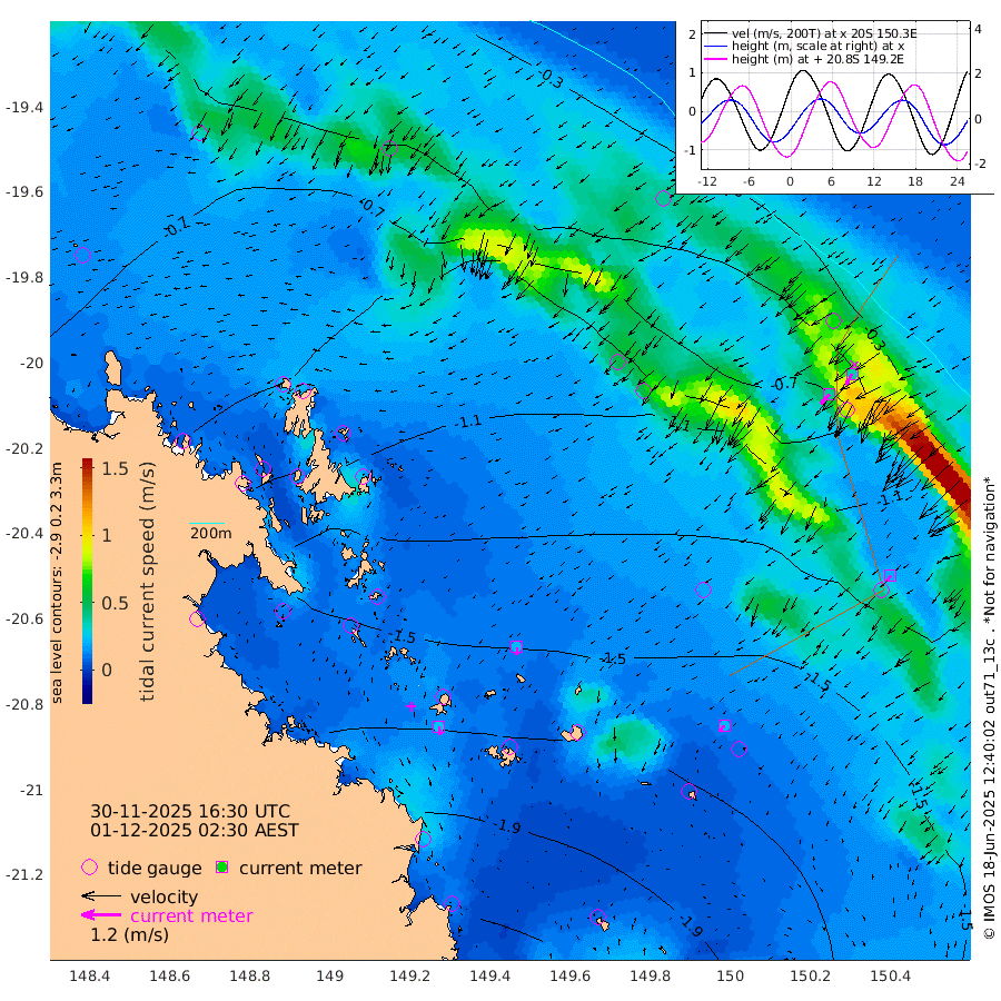 25cm/s 171T +10cm/s rms + 2cm/s 5T. Brampton I 18m 23cm/s -180T +9cm/s rms + 6cm/s 66T. Wigton I 38m 22cm/s -149T +7cm/s rms + 8cm/s 141T. Tern I 47m 38cm/s -151T +7cm/s rms + 12cm/s 54T. N Bugatti Rf 64m 38cm/s -137T +3cm/s rms + 13cm/s 178T. W Bugatti Rf 70m 19cm/s -142T +3cm/s rms + 3cm/s -130T. Creal Rf 69m -73cm Holbourne I -160cm Tern I -79cm Bugatti Rf -113cm Creal Rf -54cm White Tip I -68cm Wallaby Reef -51cm Kennedy Reef -36cm Unnamed Reef No. 2 -103cm Tideway Reef -90cm Hayman Island -138cm Square Reef -91cm Double Bay -128cm Molle Island -121cm Cid Harbour -95cm Hook Island -112cm Border Island -121cm Haslewood Island -119cm Shute Harbour -147cm Thomas Island -143cm Credlin Reef -159cm East Repulse Island -159cm Blacksmith Island -176cm Laguna Quays -158cm Carlisle Island (Off) -173cm St. Bees Island -164cm Scawfell Island -167cm Penrith Island -191cm Mackay Outer Harbour -199cm Hay Point -194cm Prudhoe Island