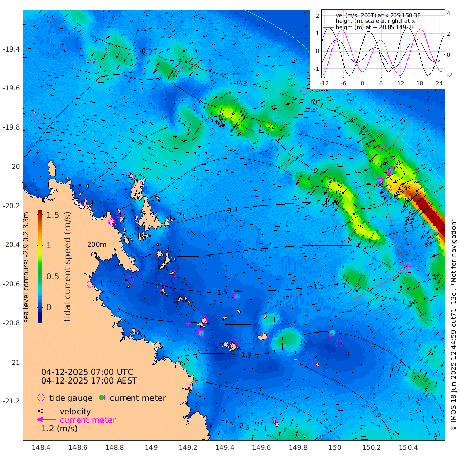 28cm/s 153T +10cm/s rms + 2cm/s 5T. Brampton I 18m 19cm/s -179T +9cm/s rms + 6cm/s 66T. Wigton I 38m 27cm/s -155T +7cm/s rms + 8cm/s 141T. Tern I 47m 38cm/s -147T +7cm/s rms + 12cm/s 54T. N Bugatti Rf 64m 30cm/s -138T +3cm/s rms + 13cm/s 178T. W Bugatti Rf 70m 22cm/s -140T +3cm/s rms + 3cm/s -130T. Creal Rf 69m -57cm Holbourne I -183cm Tern I -75cm Bugatti Rf -120cm Creal Rf -44cm White Tip I -46cm Wallaby Reef -34cm Kennedy Reef -26cm Unnamed Reef No. 2 -95cm Tideway Reef -85cm Hayman Island -128cm Square Reef -80cm Double Bay -100cm Molle Island -118cm Cid Harbour -87cm Hook Island -109cm Border Island -118cm Haslewood Island -116cm Shute Harbour -156cm Thomas Island -160cm Credlin Reef -179cm East Repulse Island -170cm Blacksmith Island -186cm Laguna Quays -177cm Carlisle Island (Off) -197cm St. Bees Island -181cm Scawfell Island -187cm Penrith Island -219cm Mackay Outer Harbour -233cm Hay Point -225cm Prudhoe Island