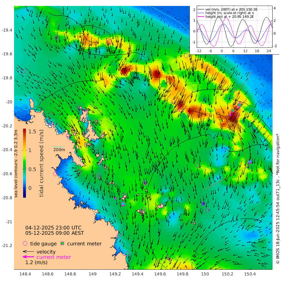 27cm/s -165T +10cm/s rms + 2cm/s 5T. Brampton I 18m 42cm/s 168T +9cm/s rms + 6cm/s 66T. Wigton I 38m 5cm/s -127T +7cm/s rms + 8cm/s 141T. Tern I 47m 43cm/s -178T +7cm/s rms + 12cm/s 54T. N Bugatti Rf 64m 68cm/s -152T +3cm/s rms + 13cm/s 178T. W Bugatti Rf 70m 21cm/s 172T +3cm/s rms + 3cm/s -130T. Creal Rf 69m 144cm Holbourne I 204cm Tern I 143cm Bugatti Rf 161cm Creal Rf 132cm White Tip I 132cm Wallaby Reef 136cm Kennedy Reef 138cm Unnamed Reef No. 2 145cm Tideway Reef 153cm Hayman Island 170cm Square Reef 159cm Double Bay 152cm Molle Island 155cm Cid Harbour 149cm Hook Island 140cm Border Island 143cm Haslewood Island 155cm Shute Harbour 162cm Thomas Island 189cm Credlin Reef 180cm East Repulse Island 166cm Blacksmith Island 163cm Laguna Quays 187cm Carlisle Island (Off) 200cm St. Bees Island 175cm Scawfell Island 199cm Penrith Island 197cm Mackay Outer Harbour 211cm Hay Point 219cm Prudhoe Island
